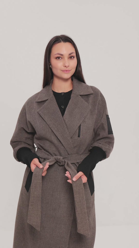 Miru Cashmere Wool Blend Overcoat in Beige Houndstooth