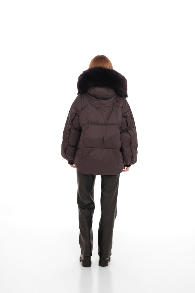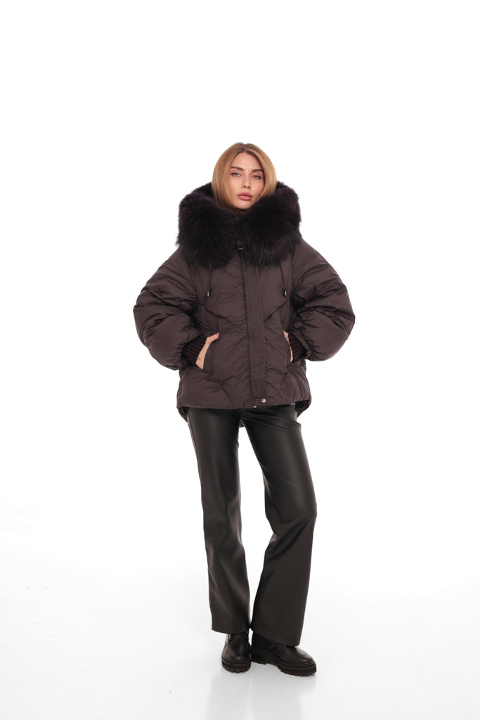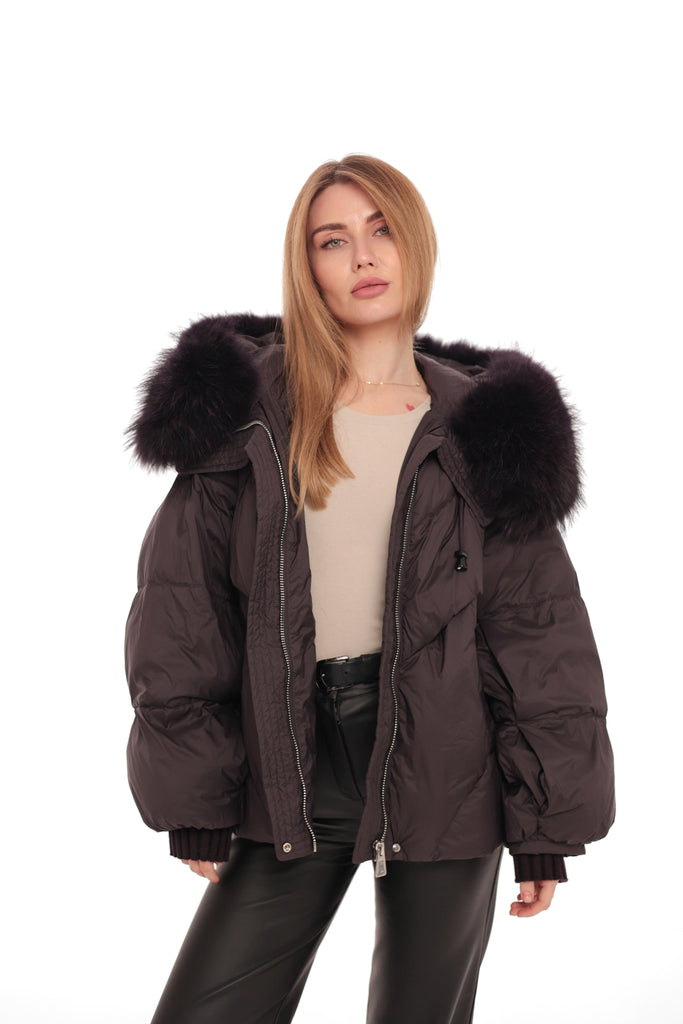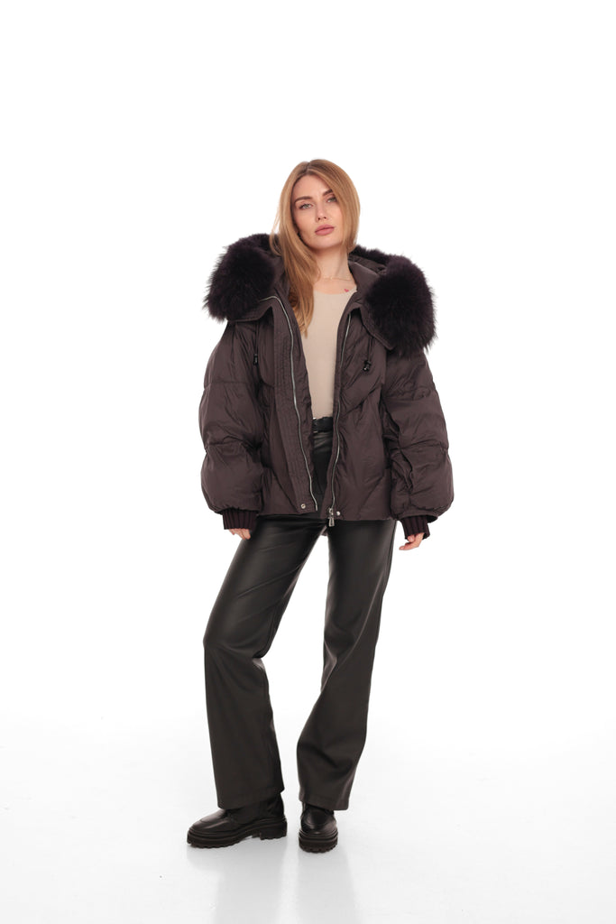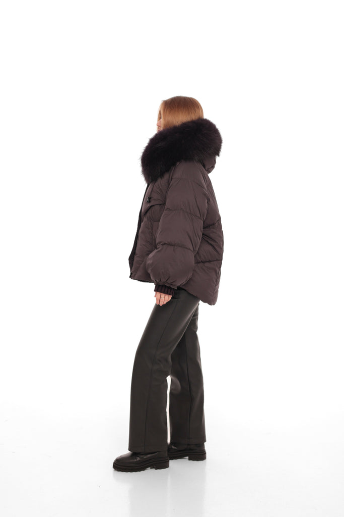 Genuine Fur Trim Down Fill Puffer in Fig