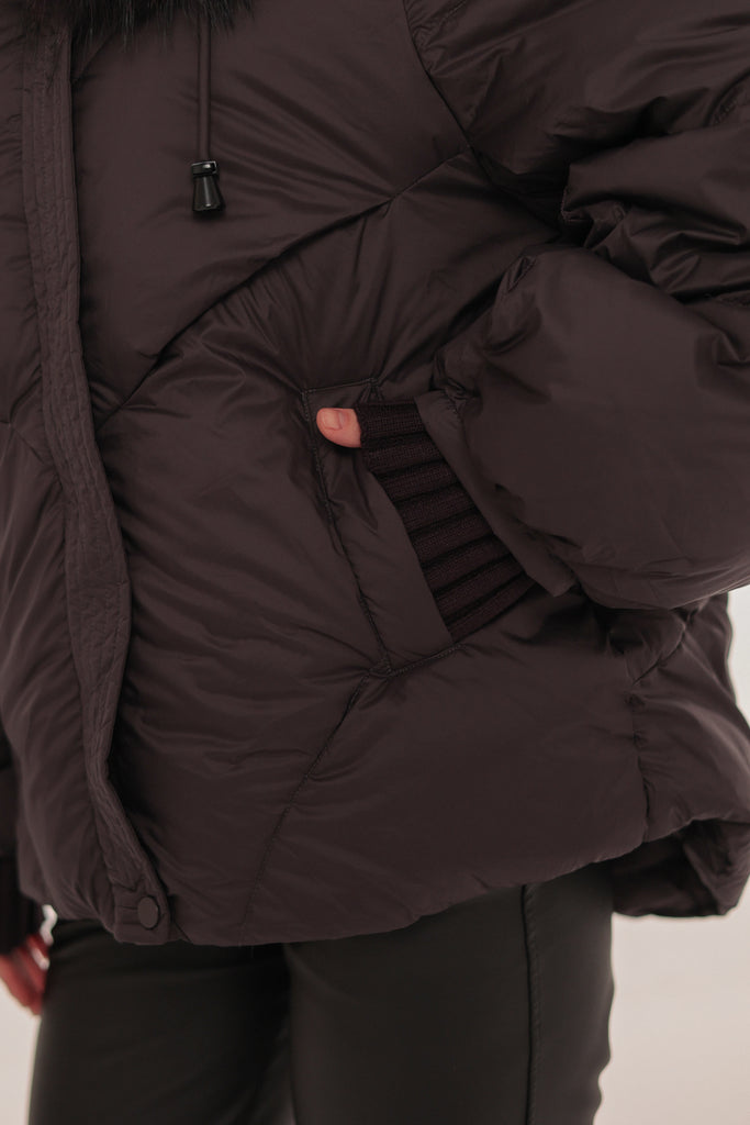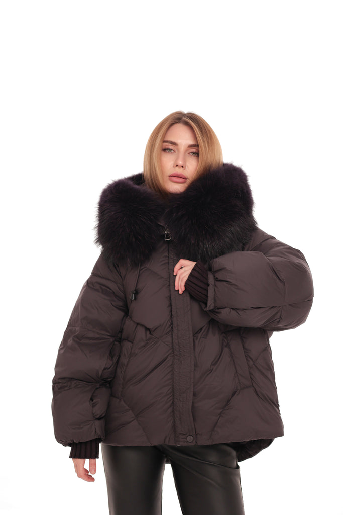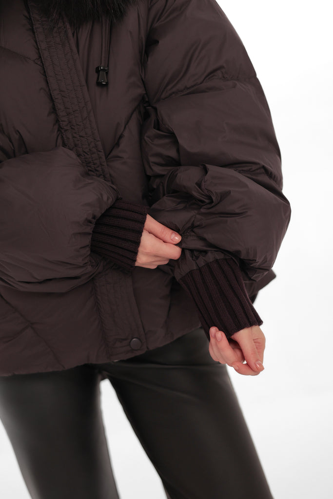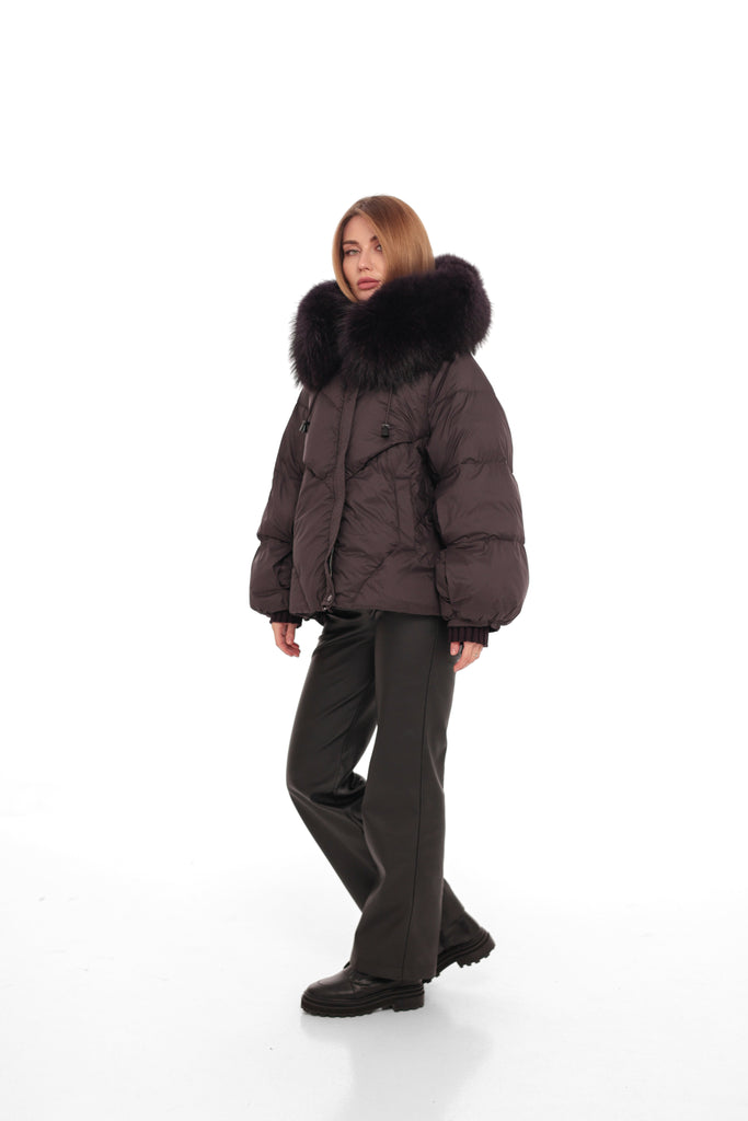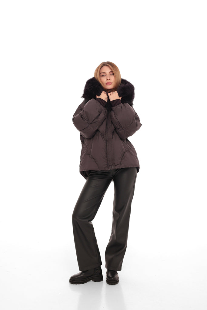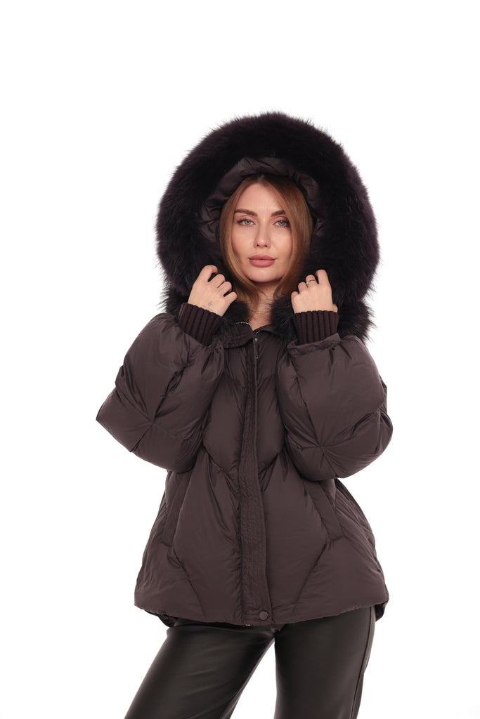 Genuine Fur Trim Down Fill Puffer in Fig
