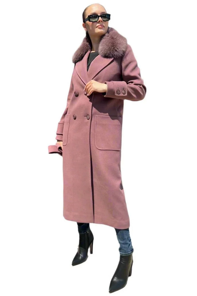 Genuine Polar Fox Tailored Cashmere Wool Coat