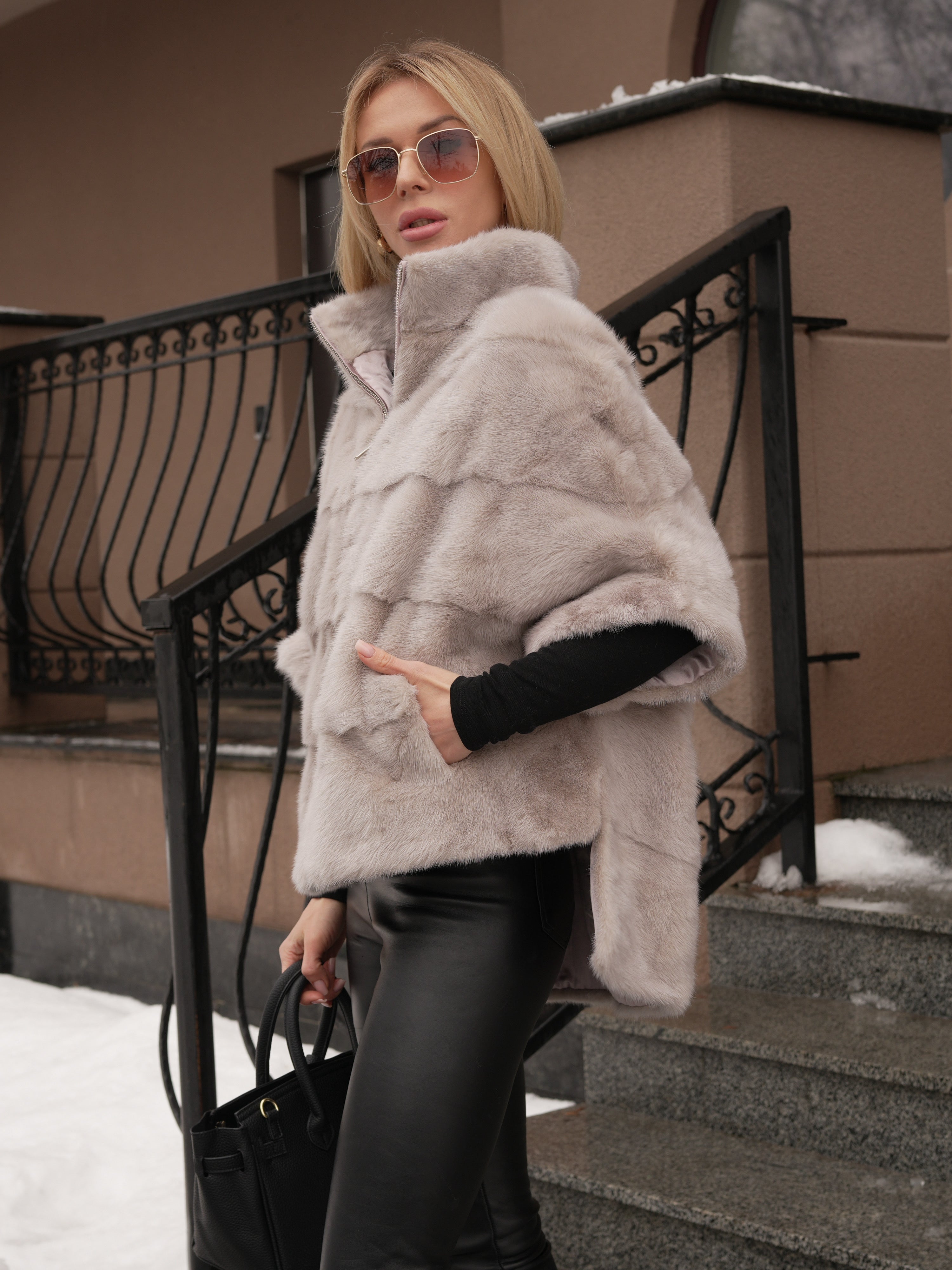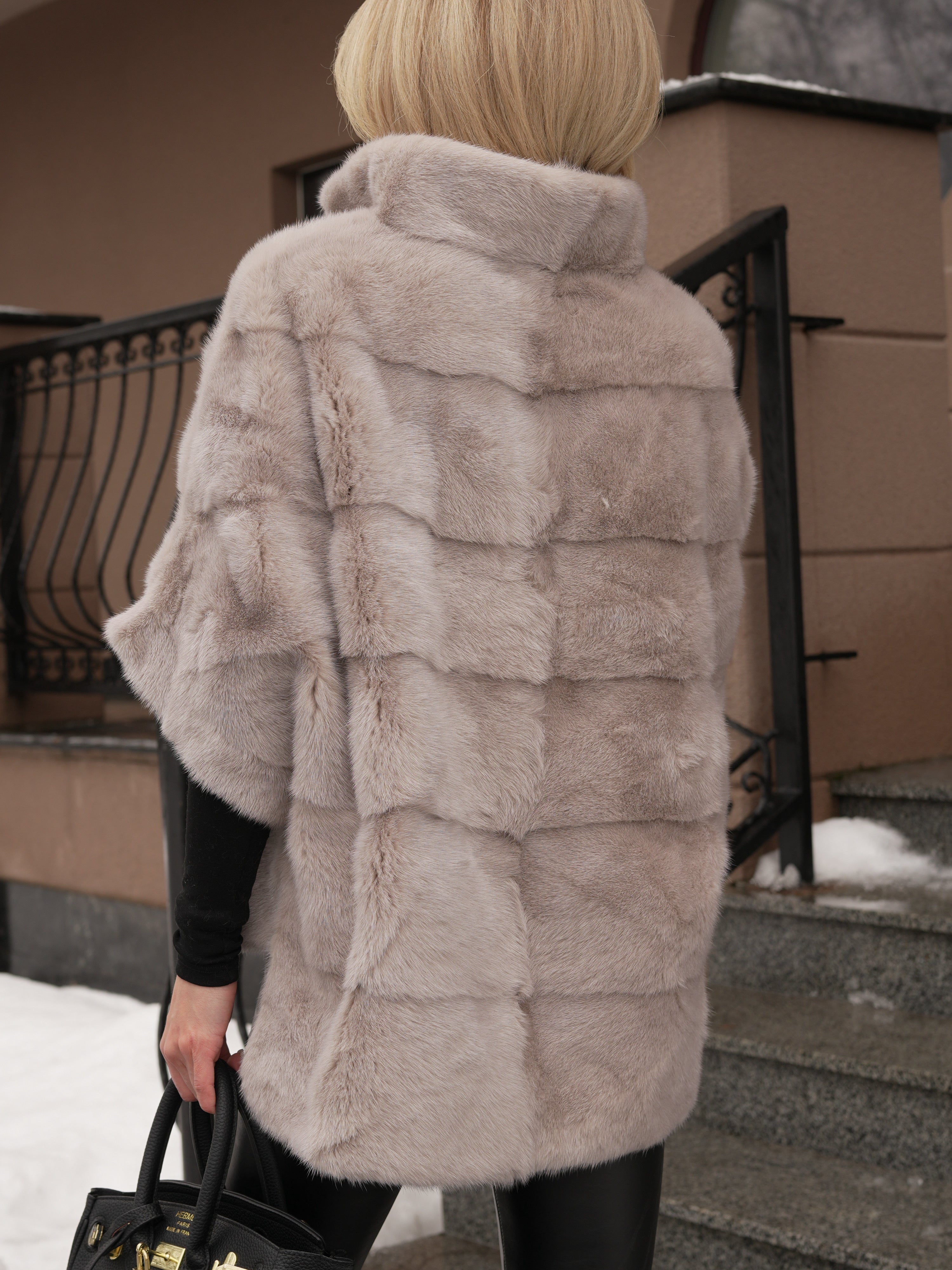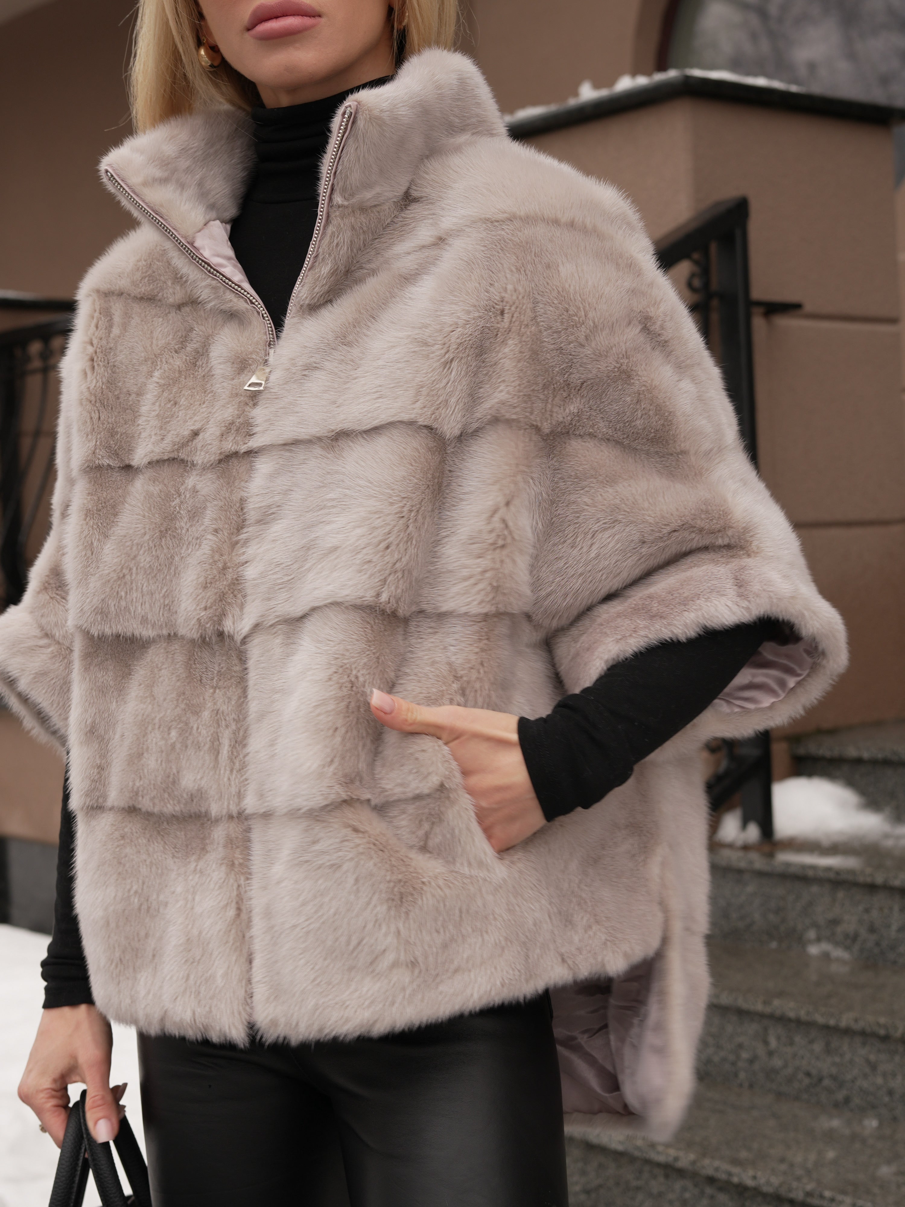 Genuine Scandinavian Mink Fur Poncho in Cream Cross