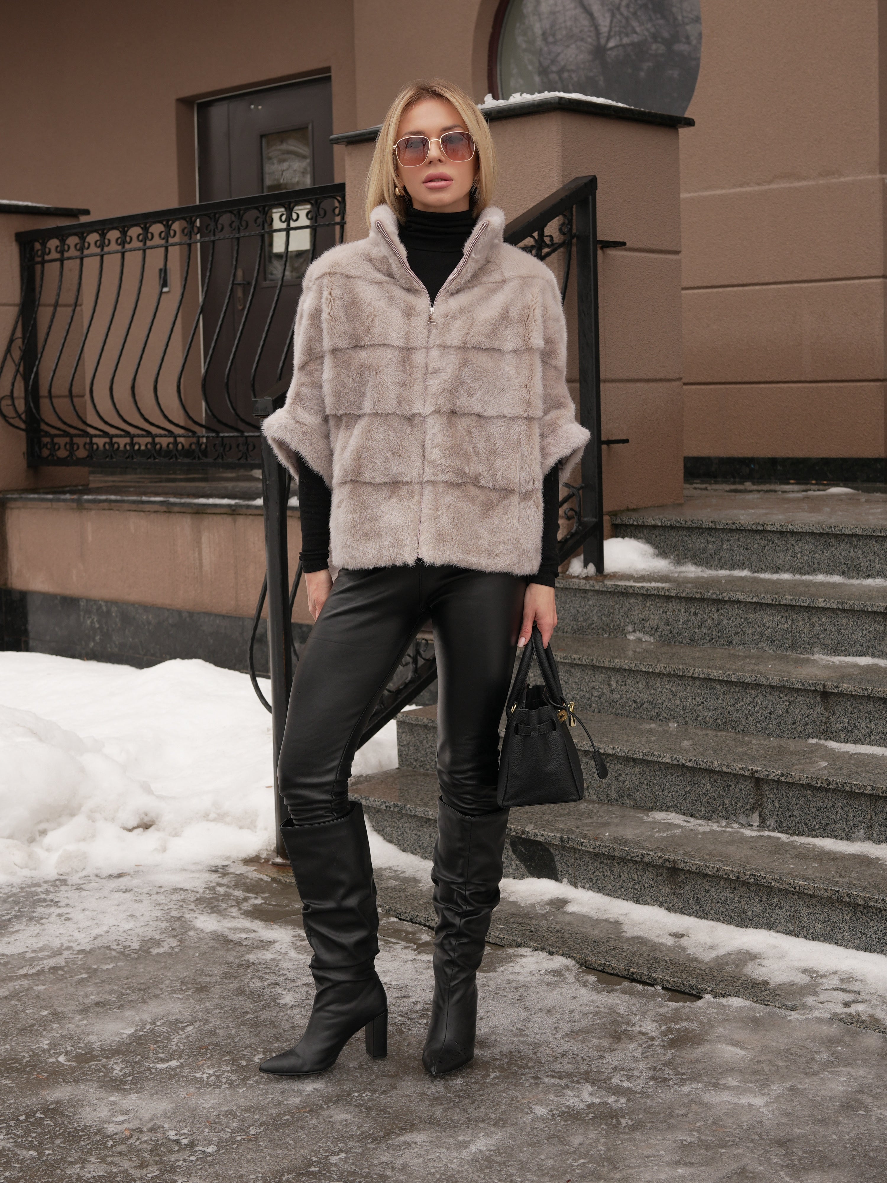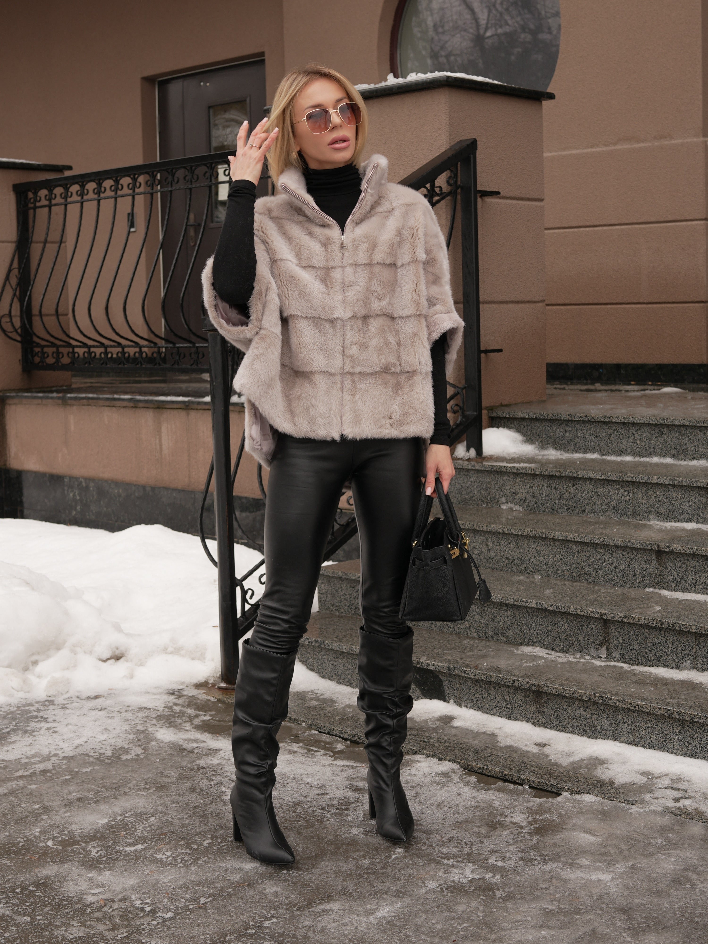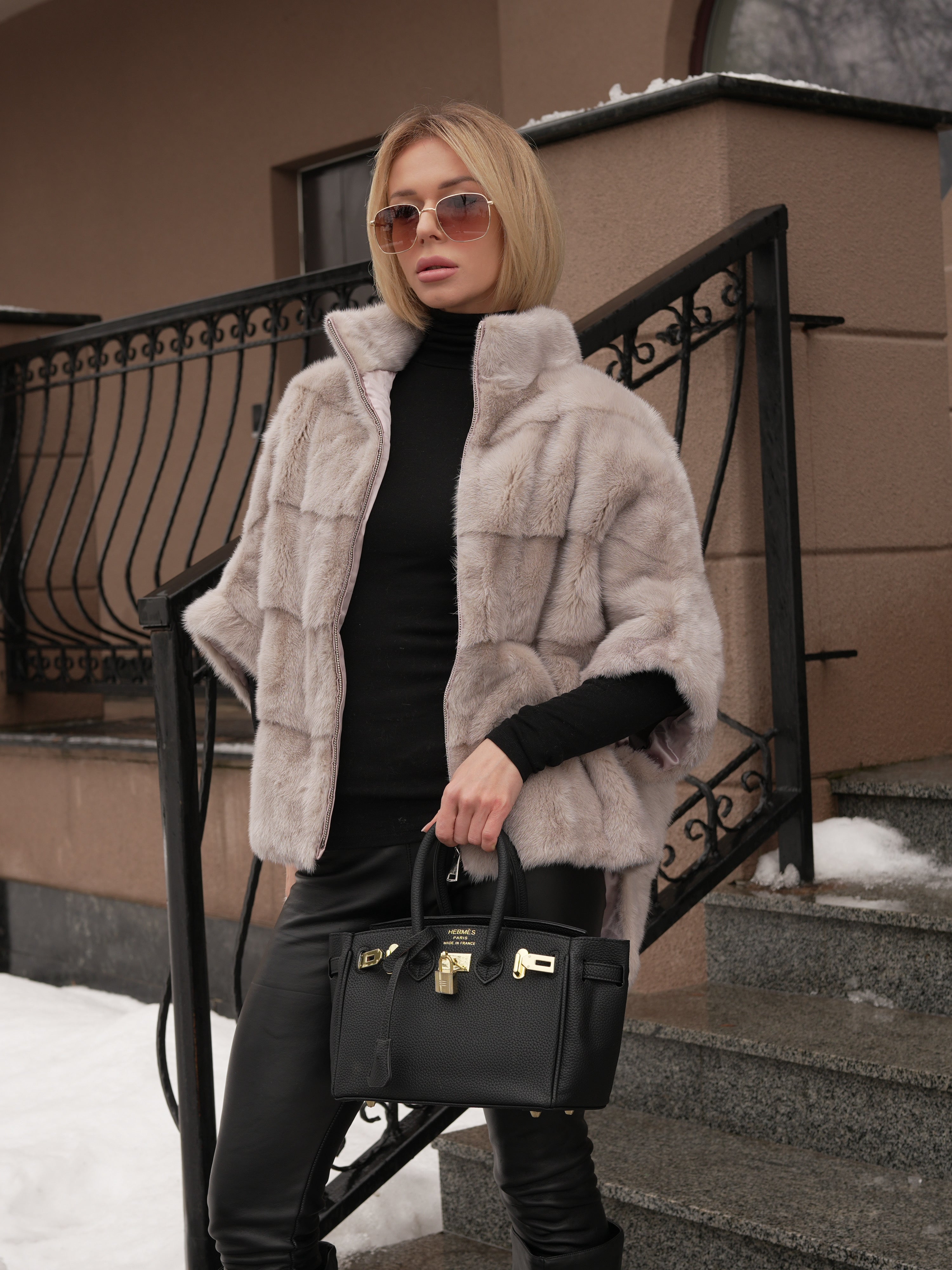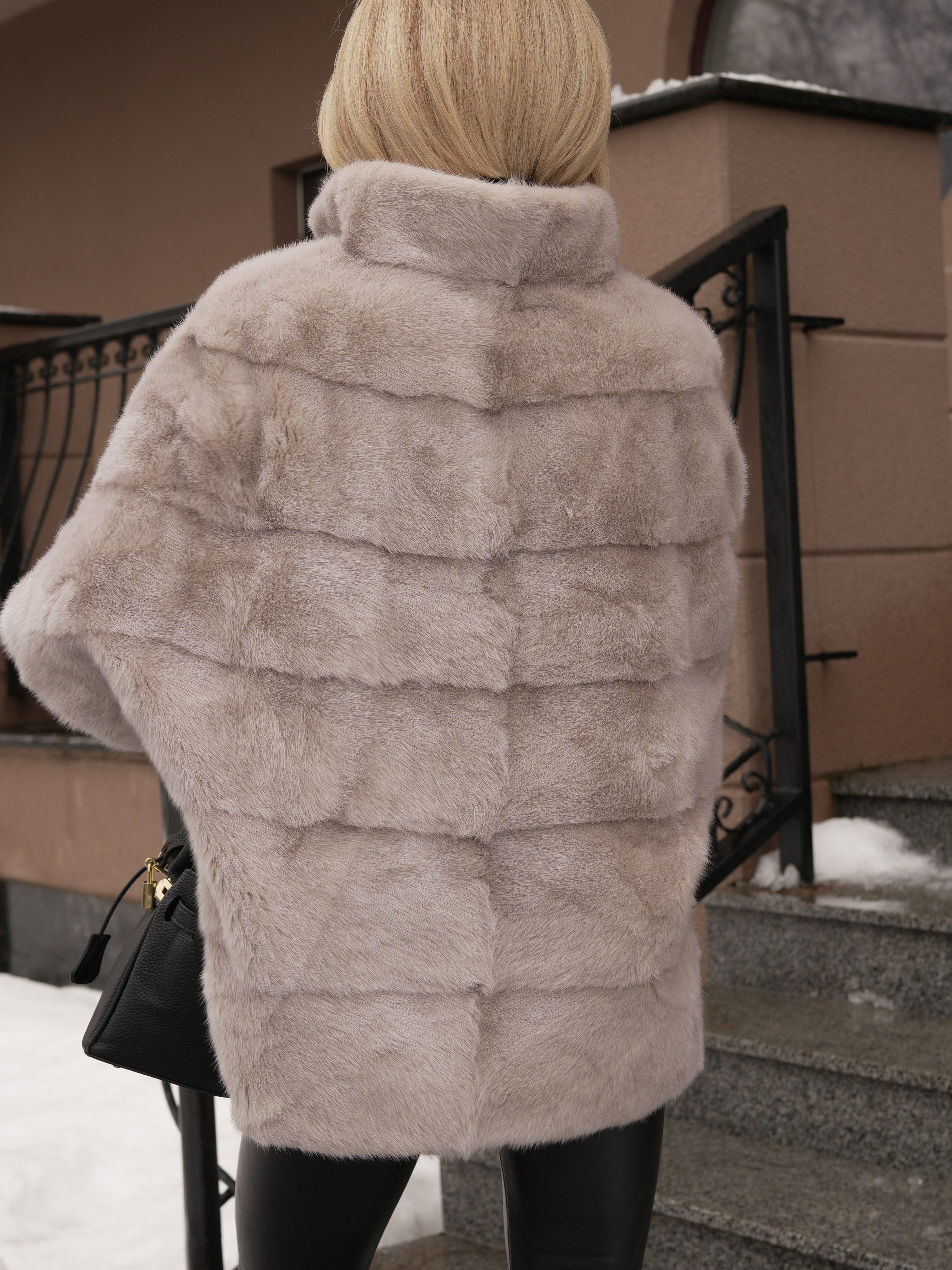Genuine Scandinavian Mink Fur Poncho in Cream Cross