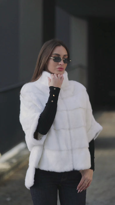 A mink poncho is both practical and stylish! Keep warm in style with this easy to wear genuine mink poncho.  Slip this on easily and enjoy it as you go about your busy day, in and out of the car or striding along on a brisk hike. A fantastic traveling piece, lightweight and easy to roll up and pack, or unroll and wear it in chilly airport lounges. Wherever you go, your winter days will be welcomed when you have this delightfully free and easy mink poncho to enjoy!