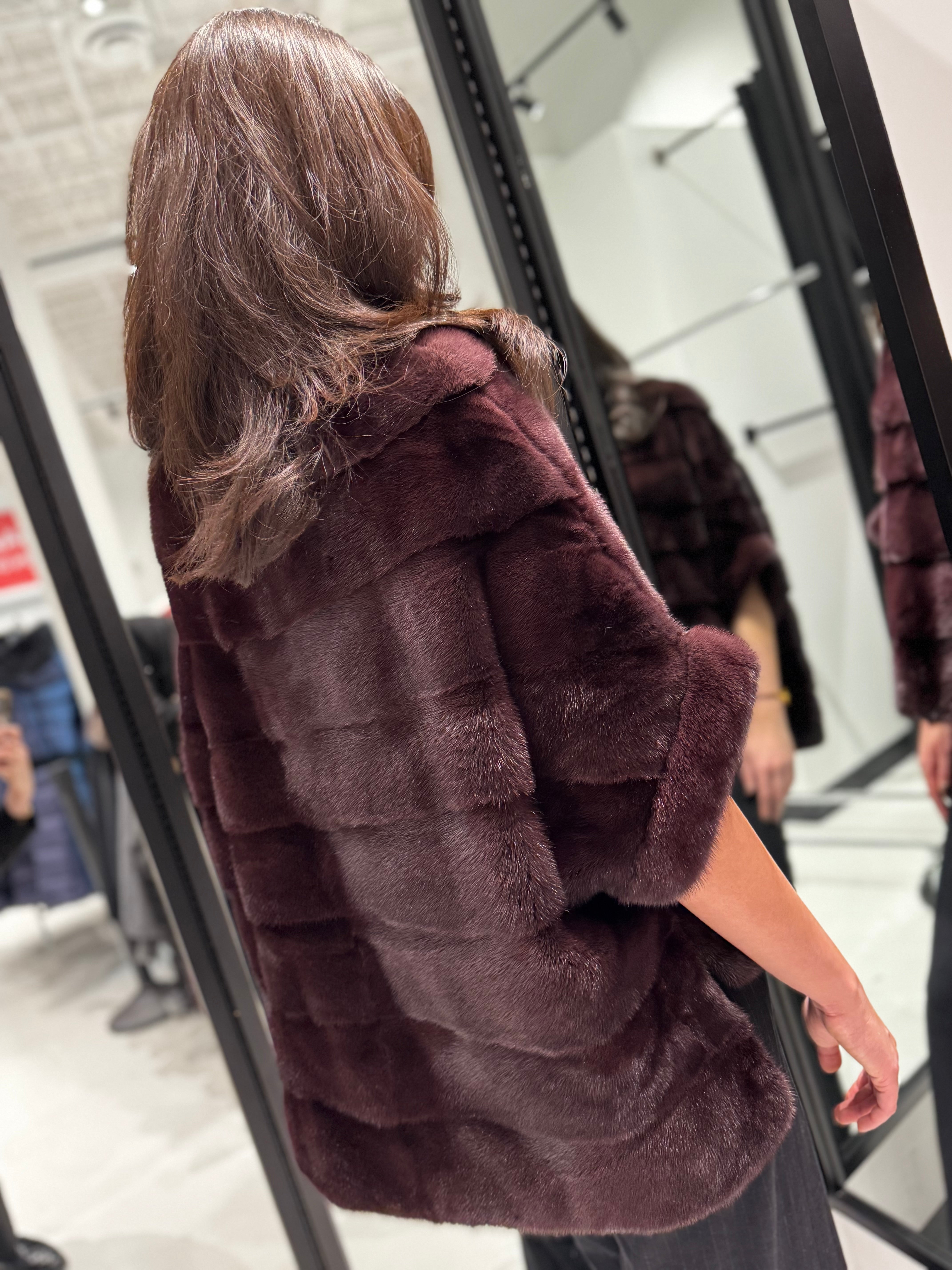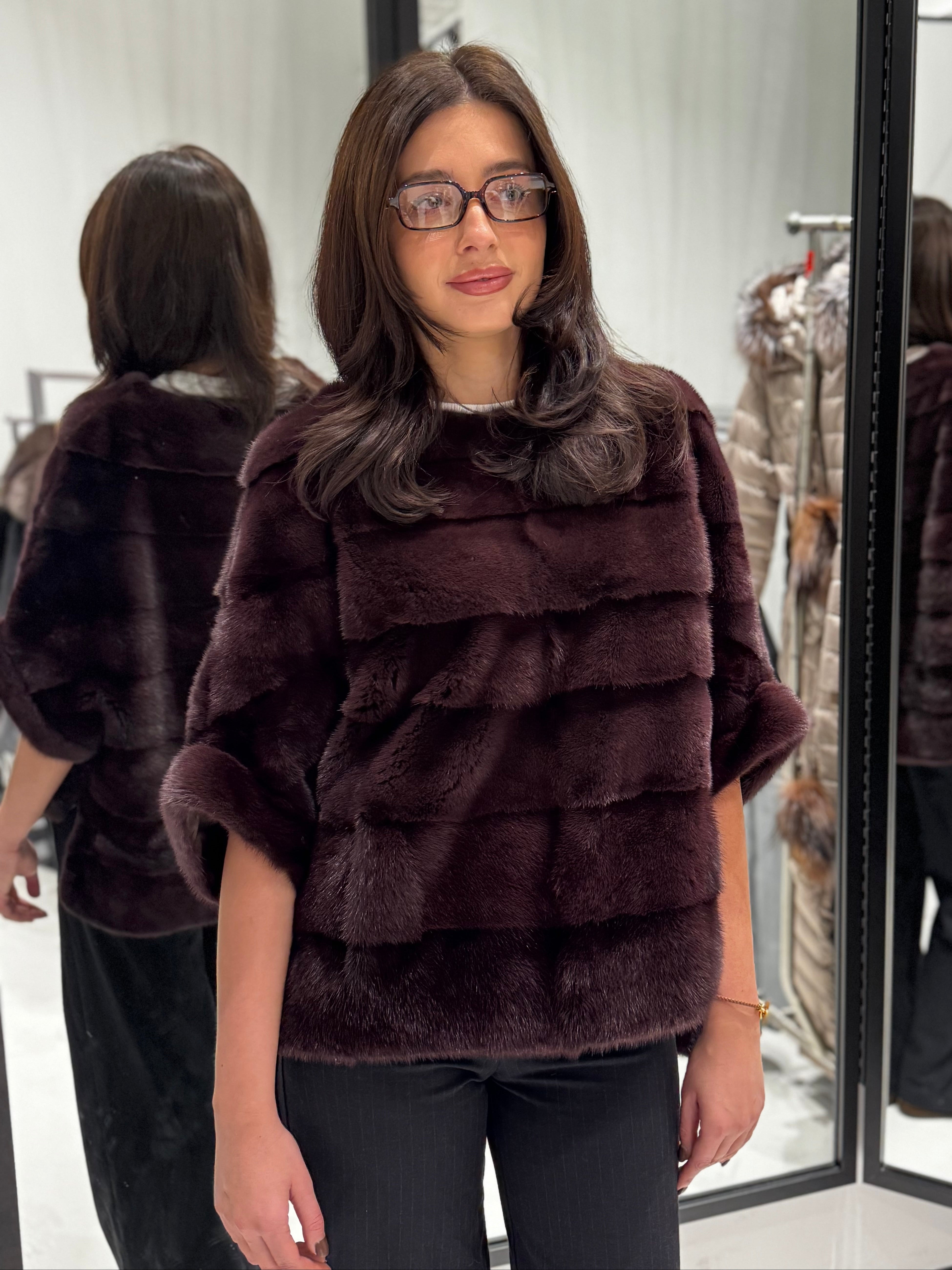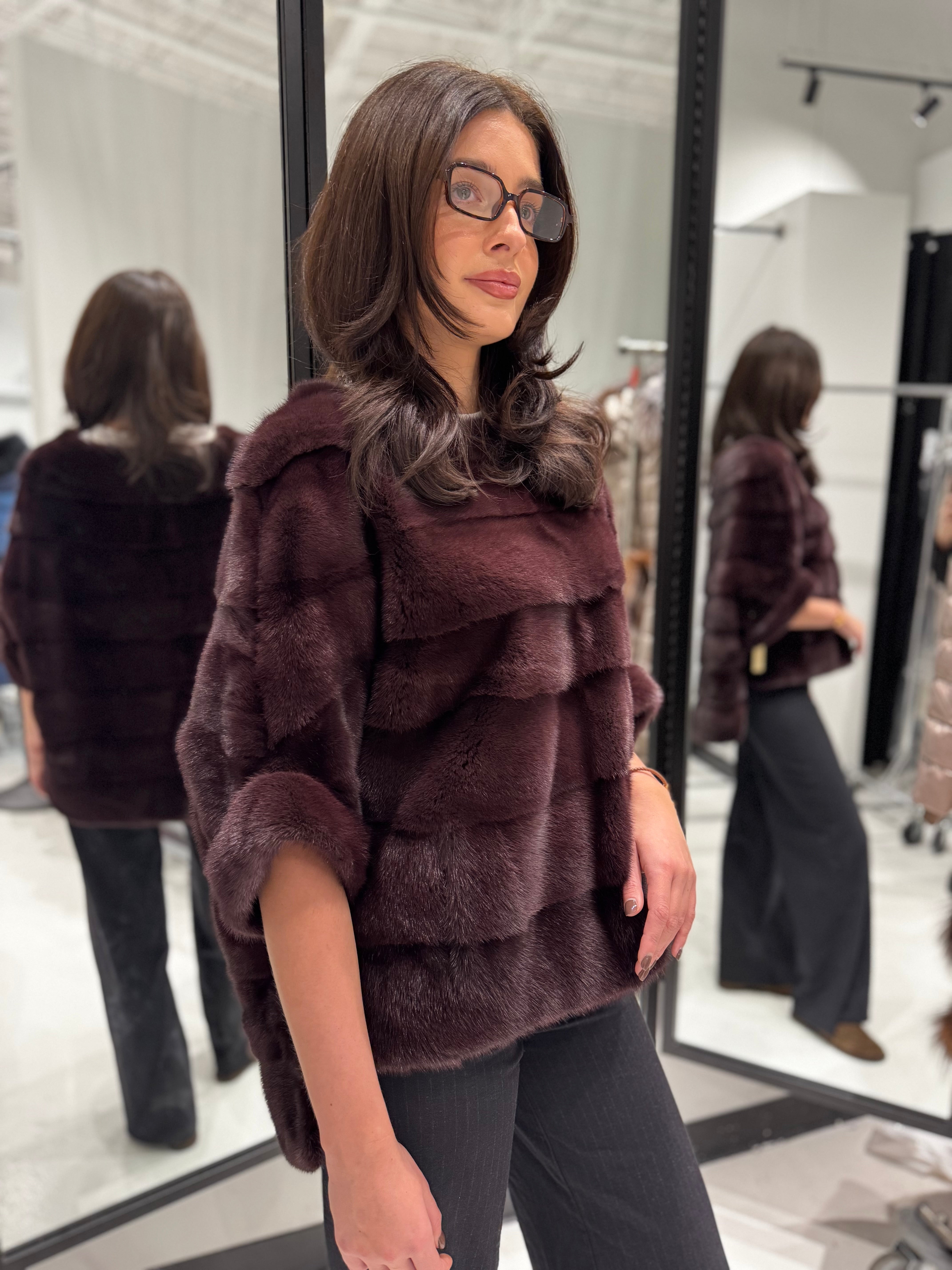 Genuine Scandinavian Mink Fur Poncho - Wine is backordered and will ship as soon as it is back in stock.