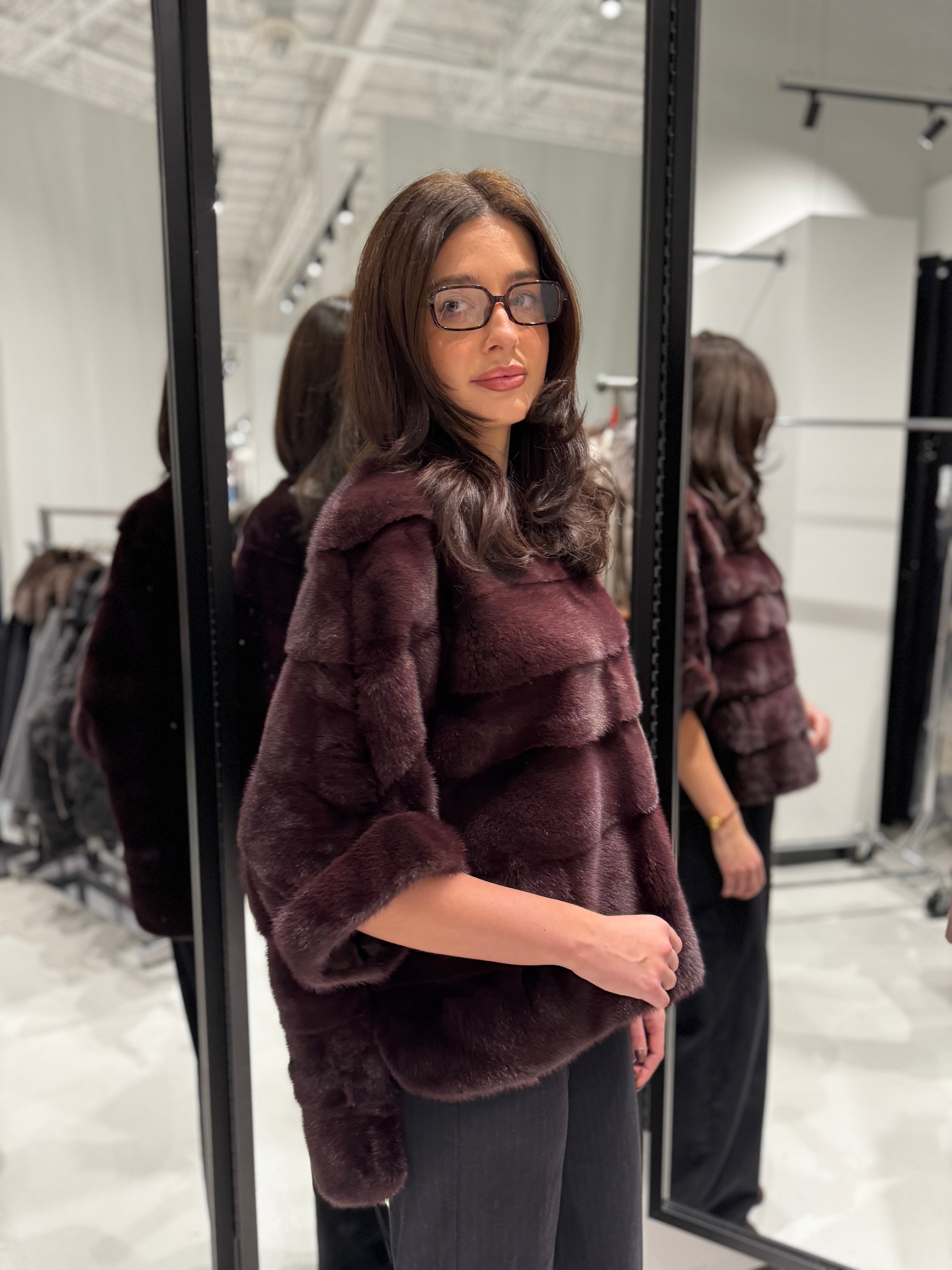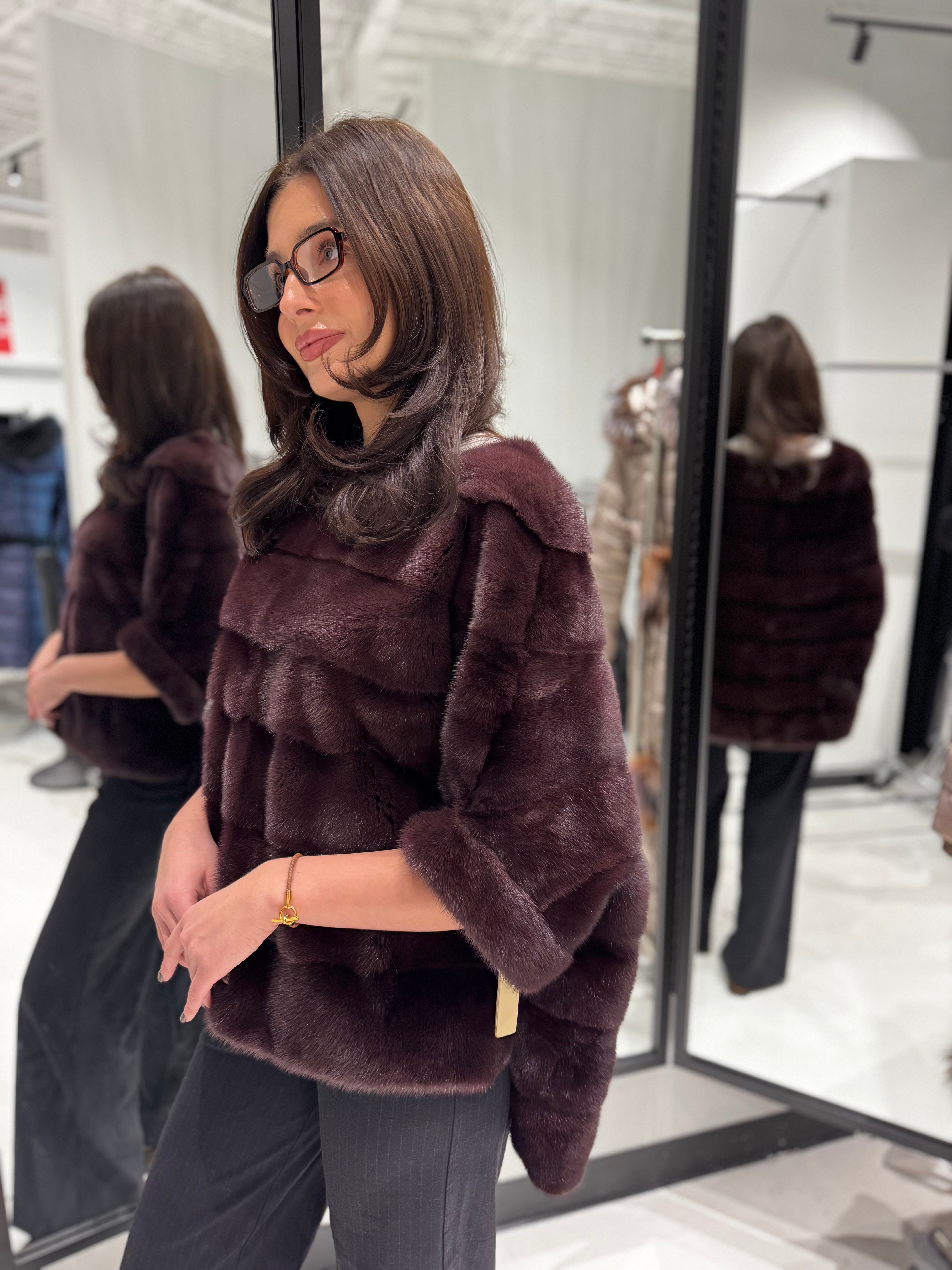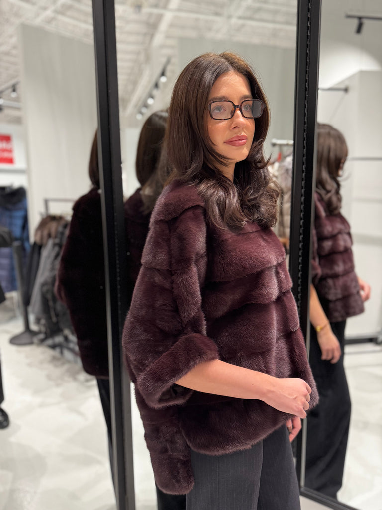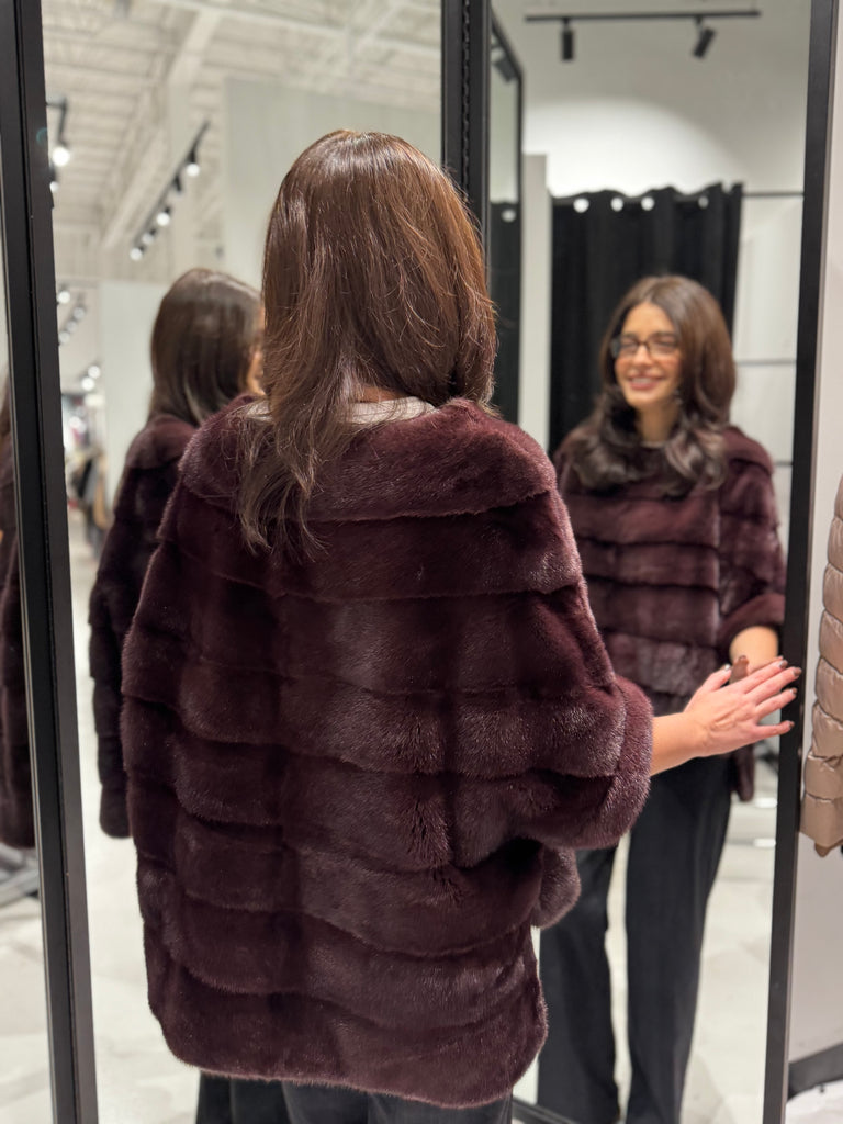 Genuine Scandinavian Mink Fur Poncho - Wine is backordered and will ship as soon as it is back in stock.