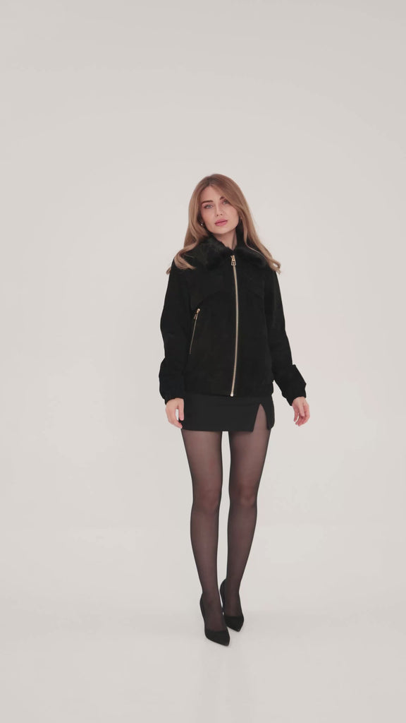 Pre-Order. Ships November 1. Genuine Suede Mink Trim Jacket