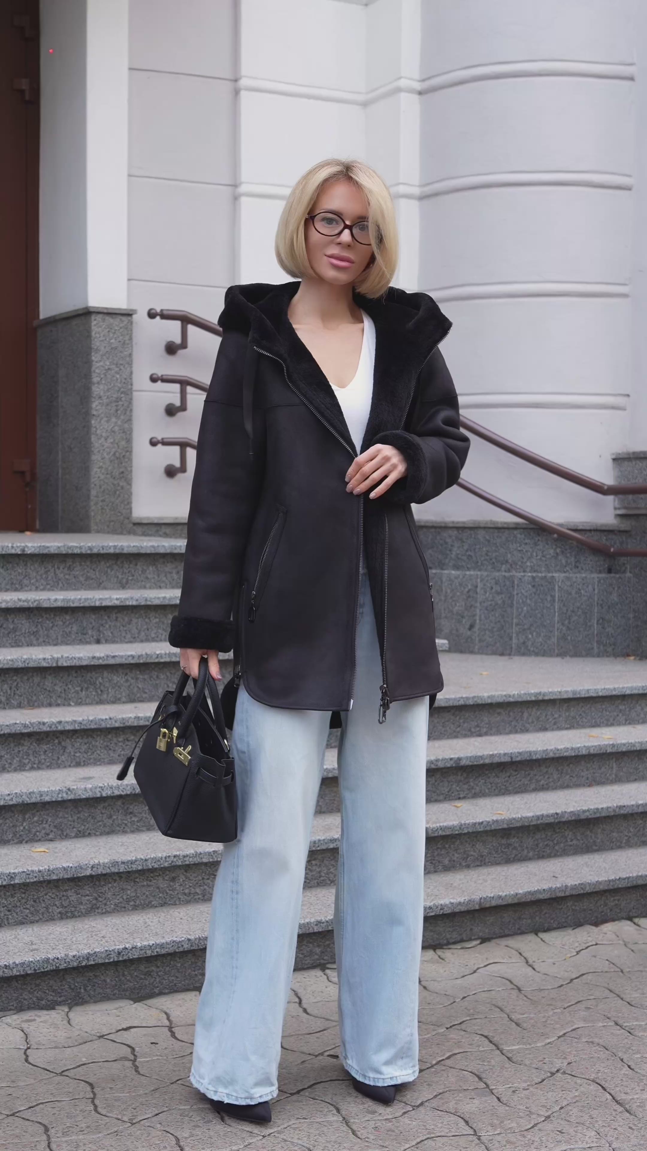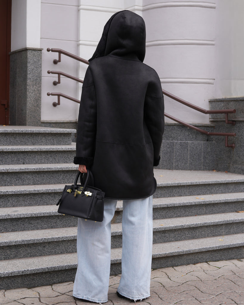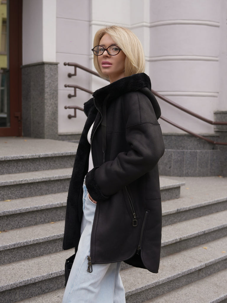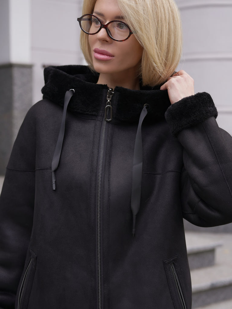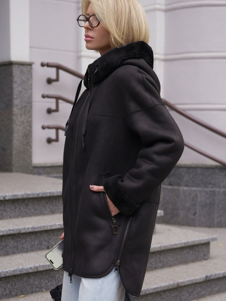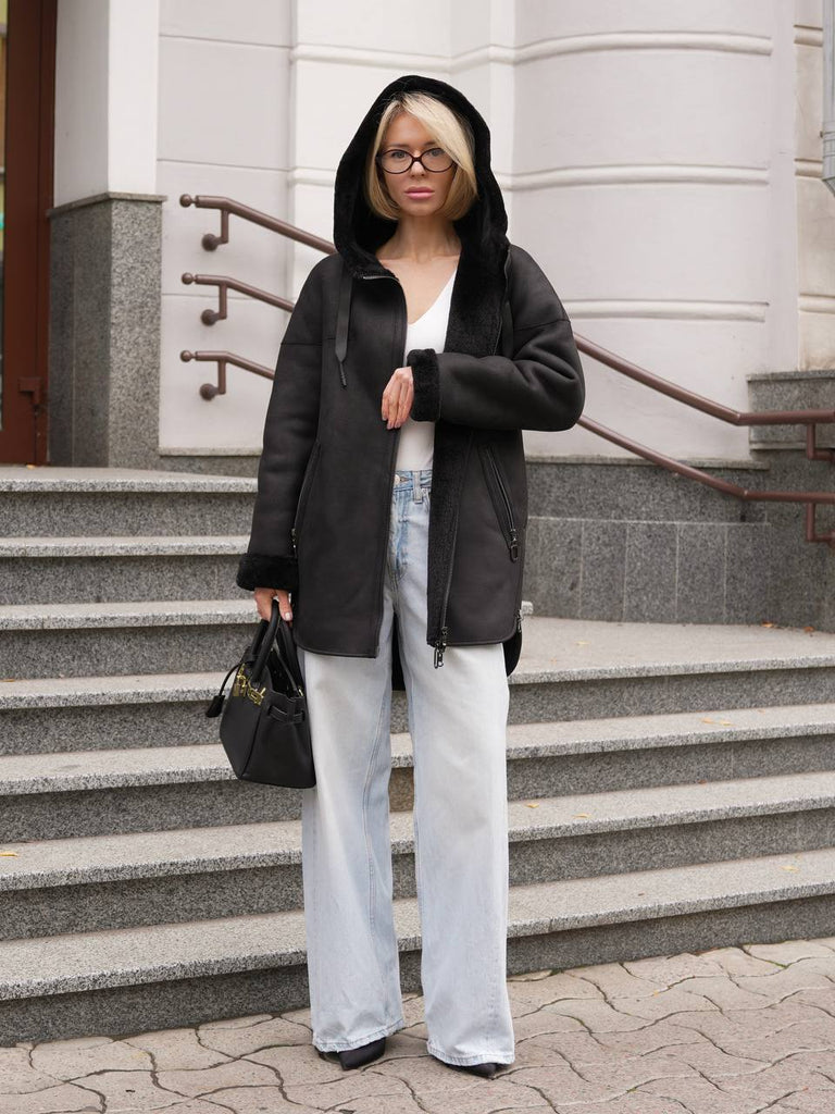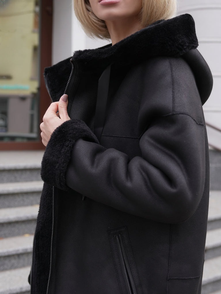 ⇆ Reversible Faux Shearling Hooded Coat