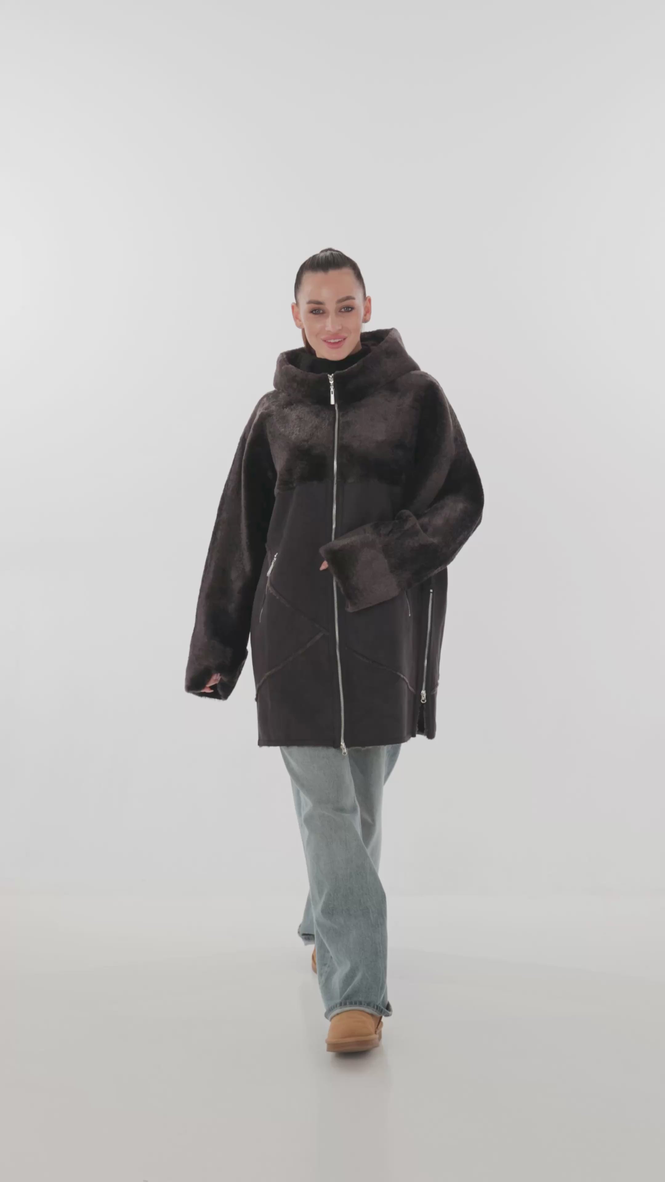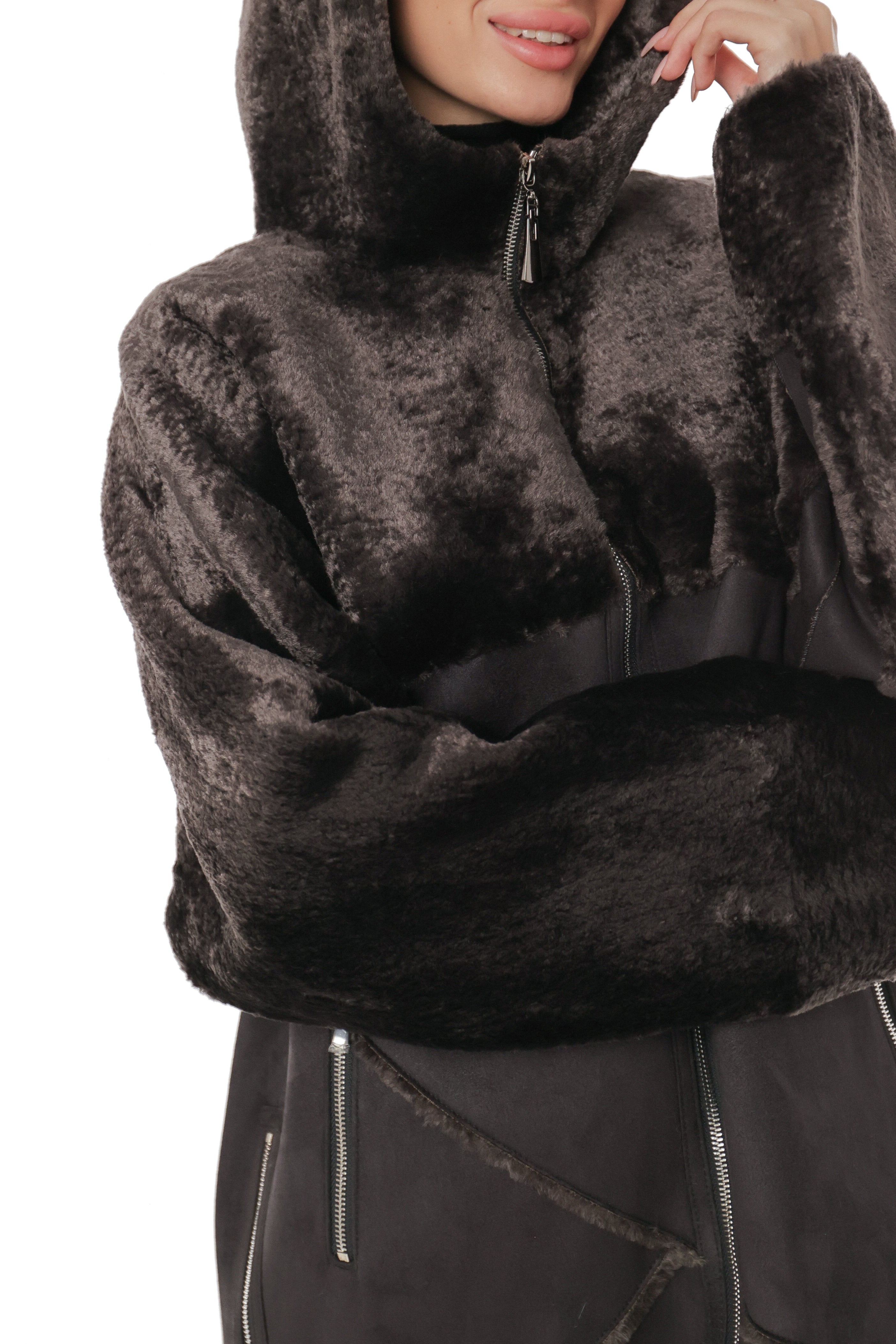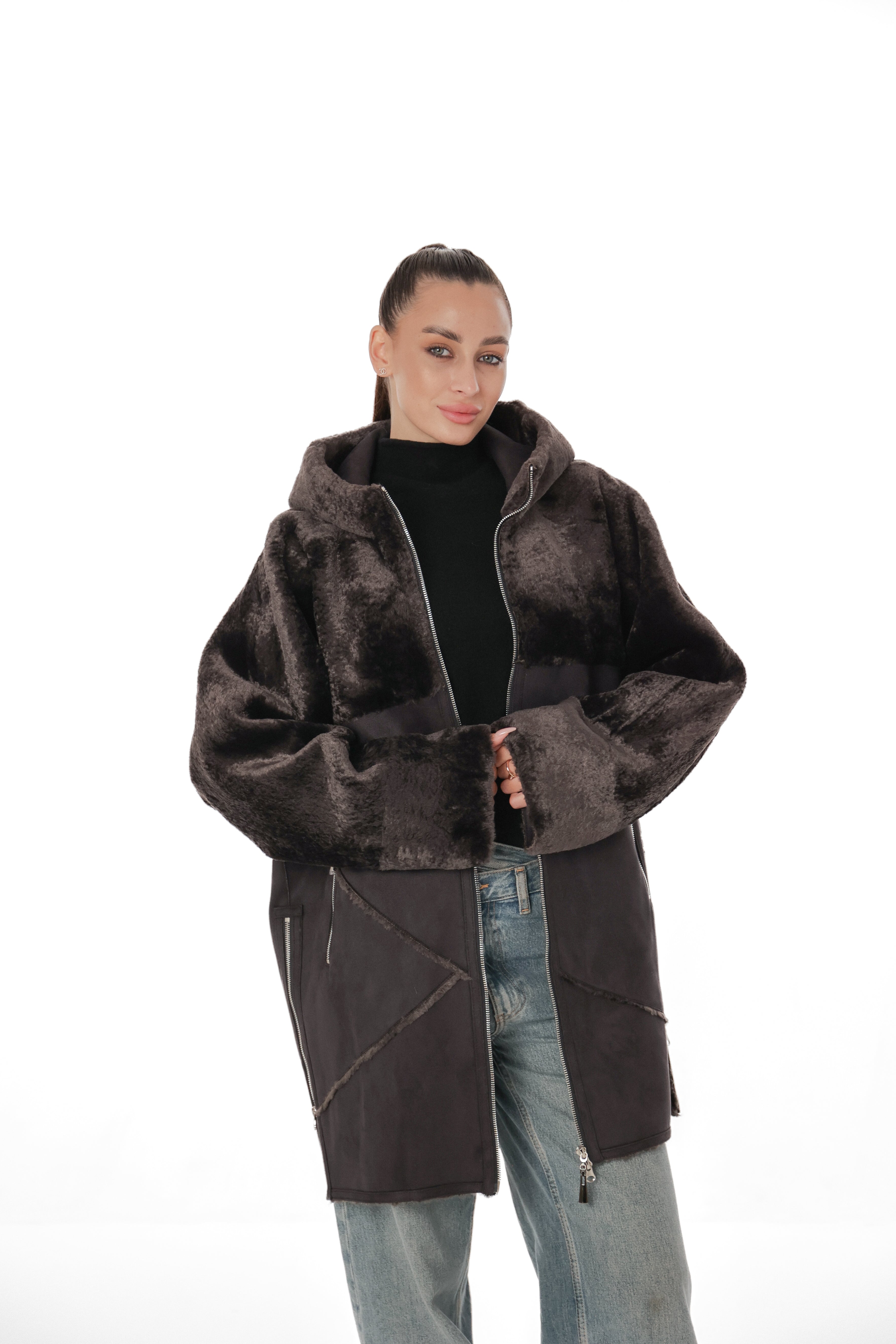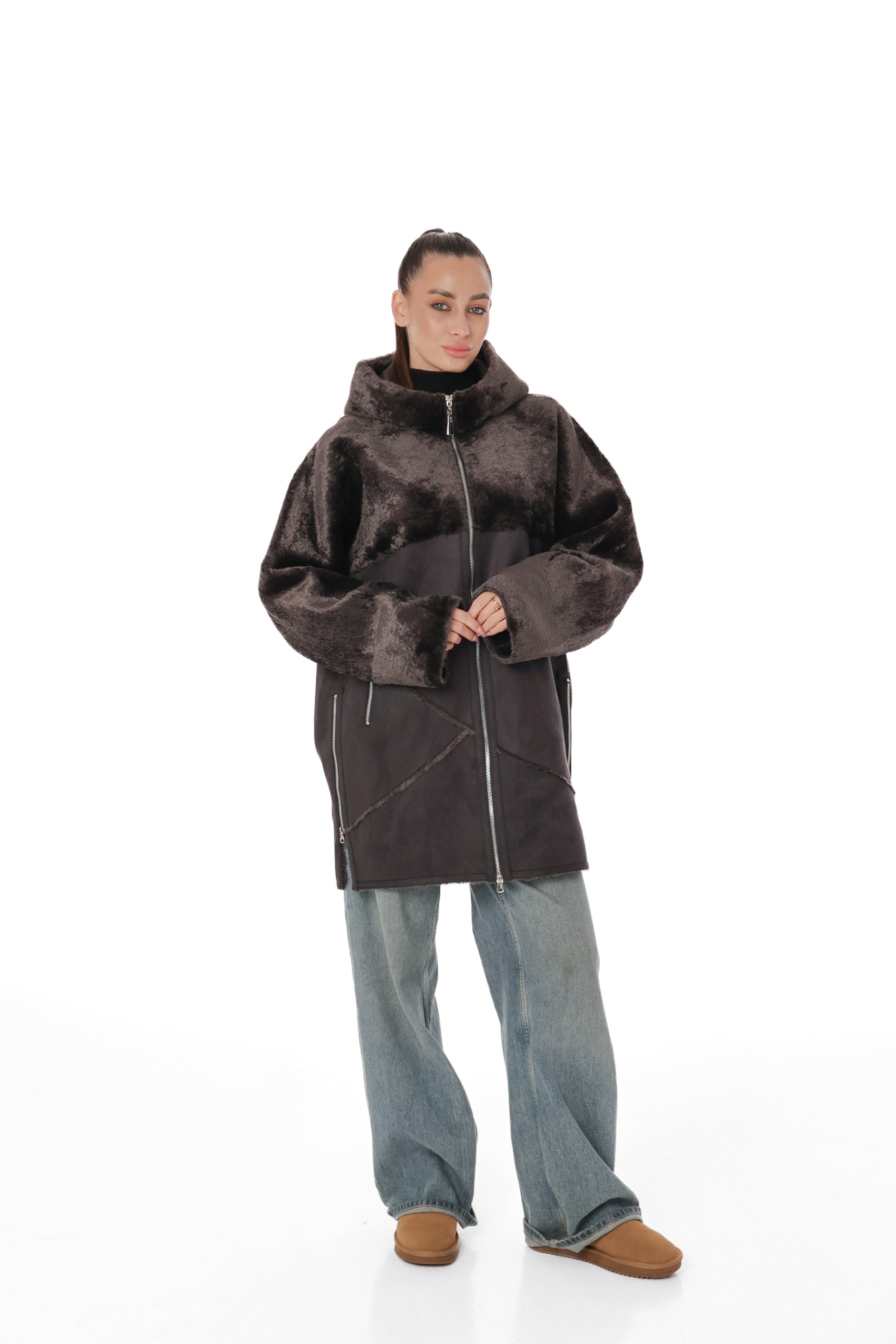 Hooded Wool Blend Eco-Suede Coat