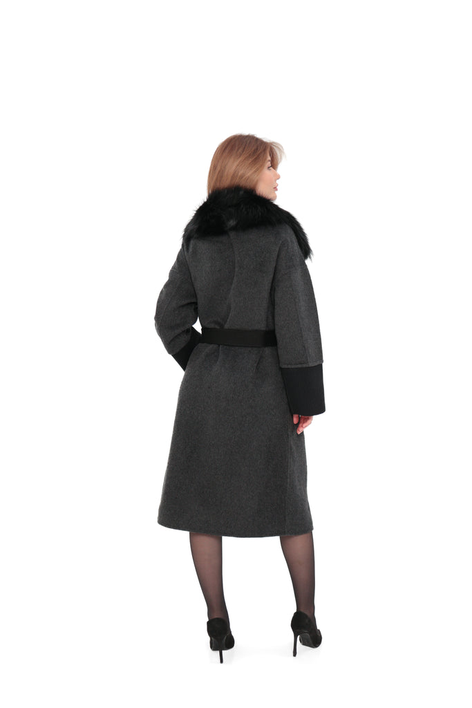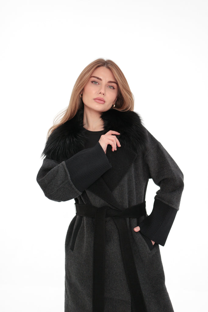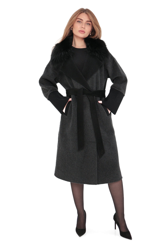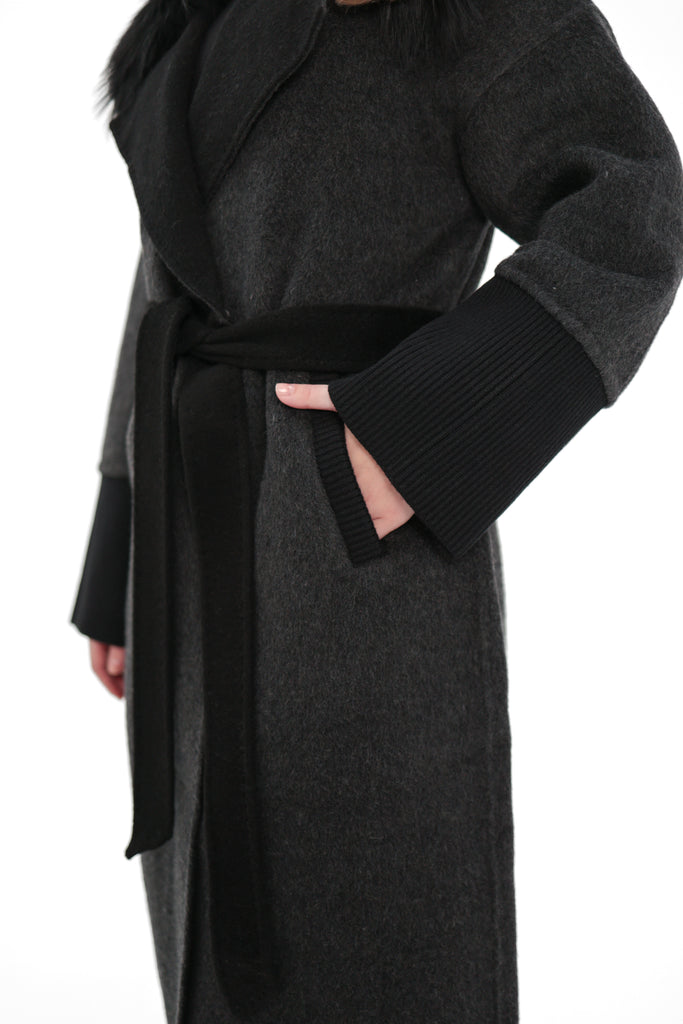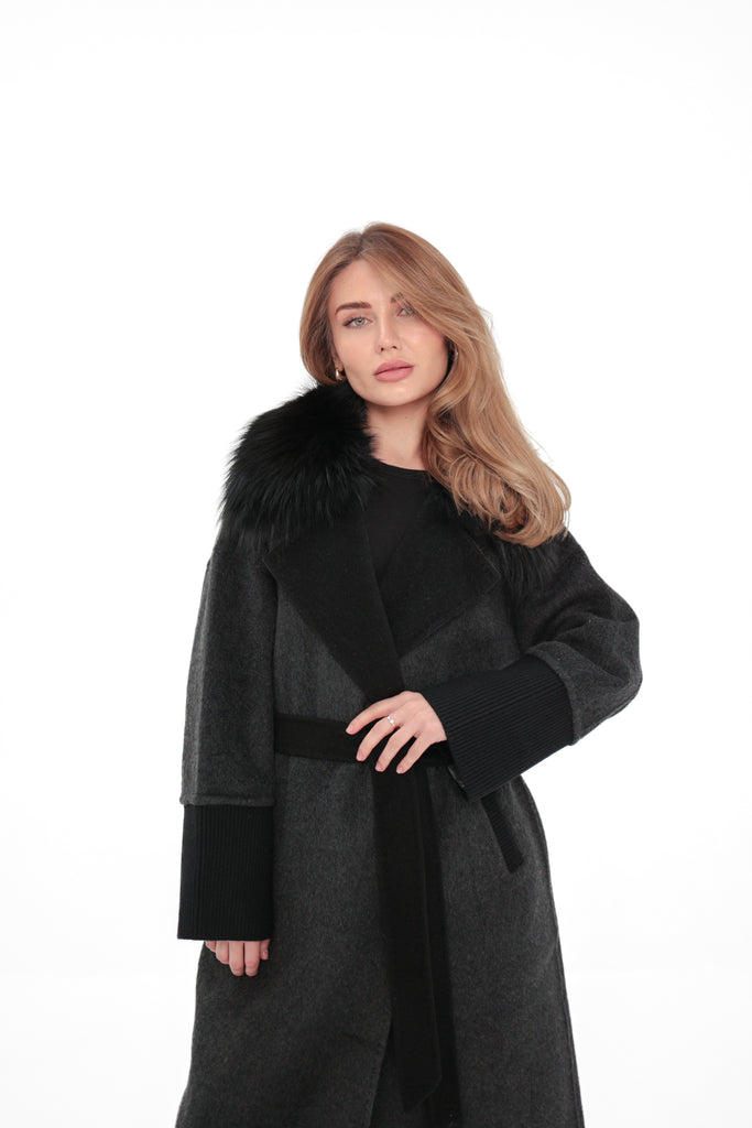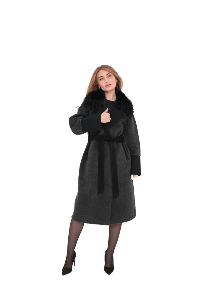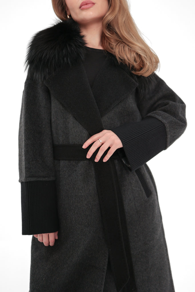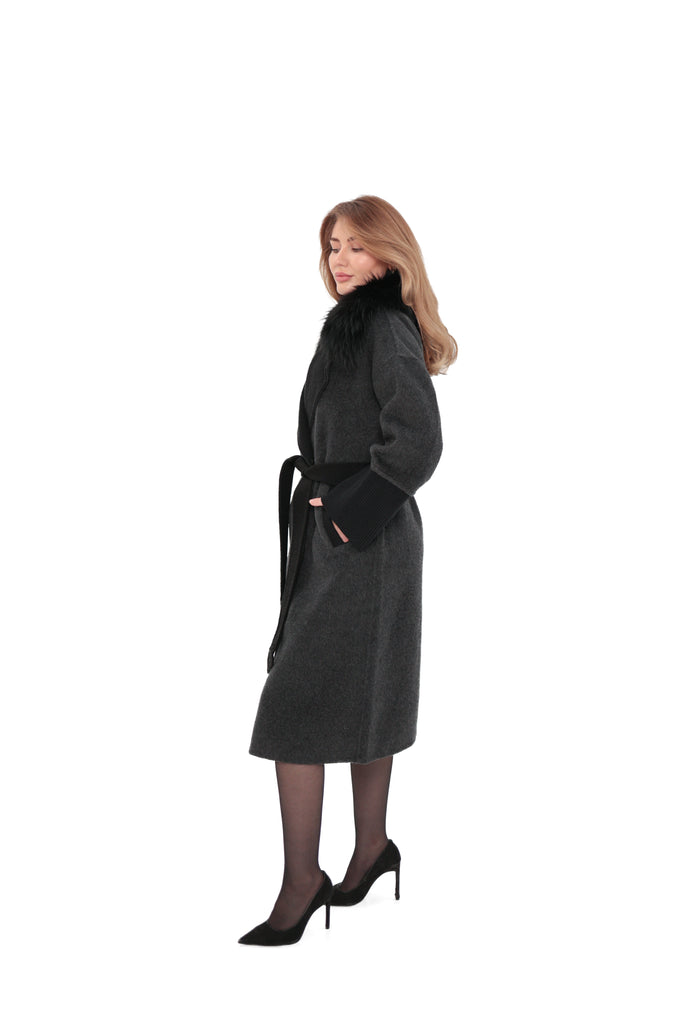 Boston Genuine Silver Fox Cashmere Blend Double-Face Coat in Graphite