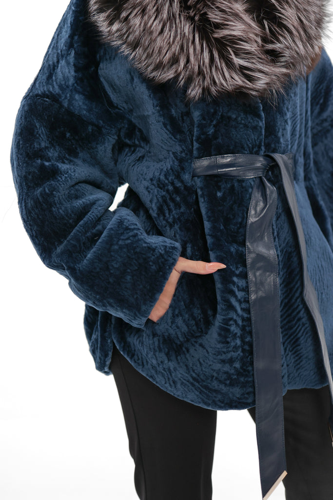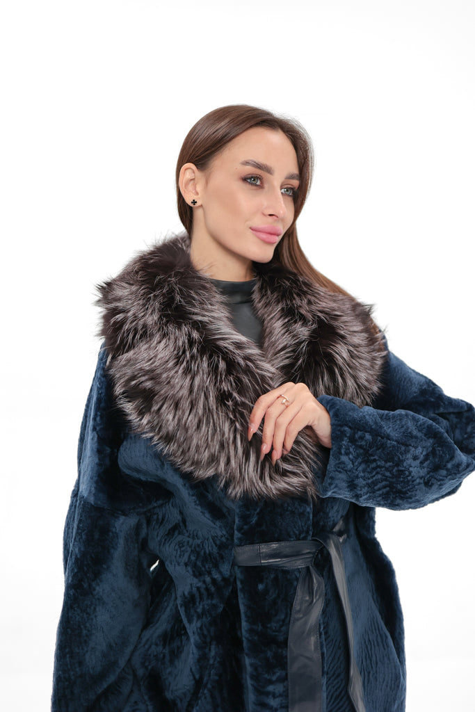 Calabria Genuine Astrakhan Silver Fox Trim Coat