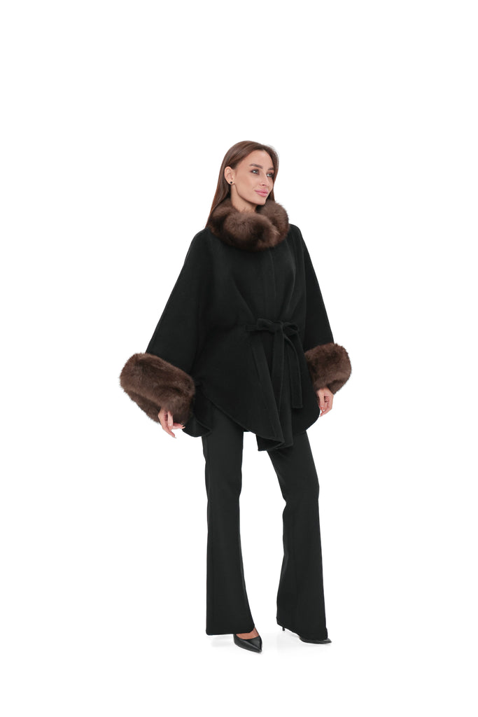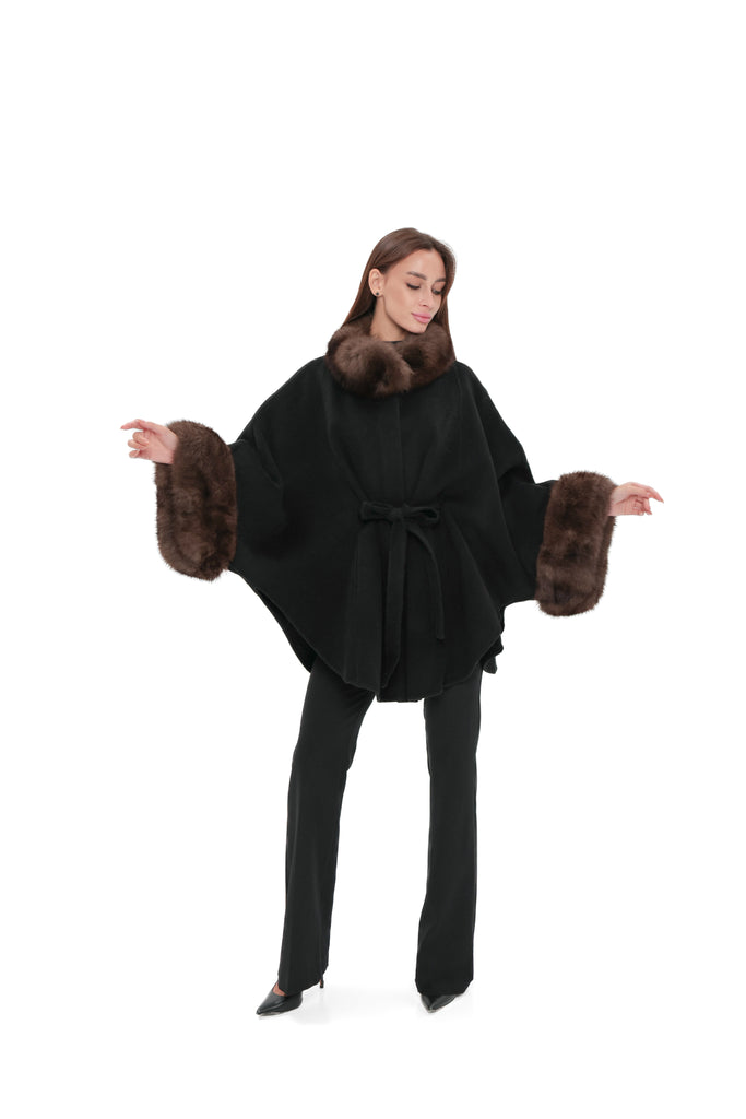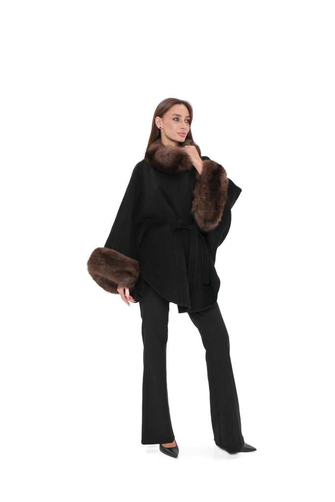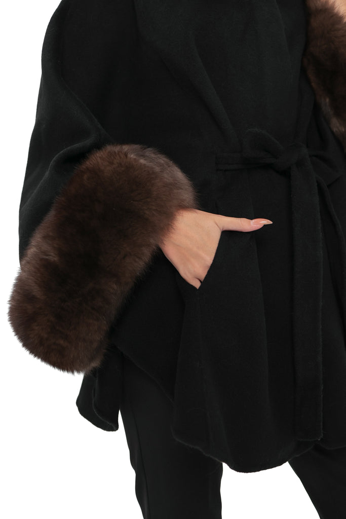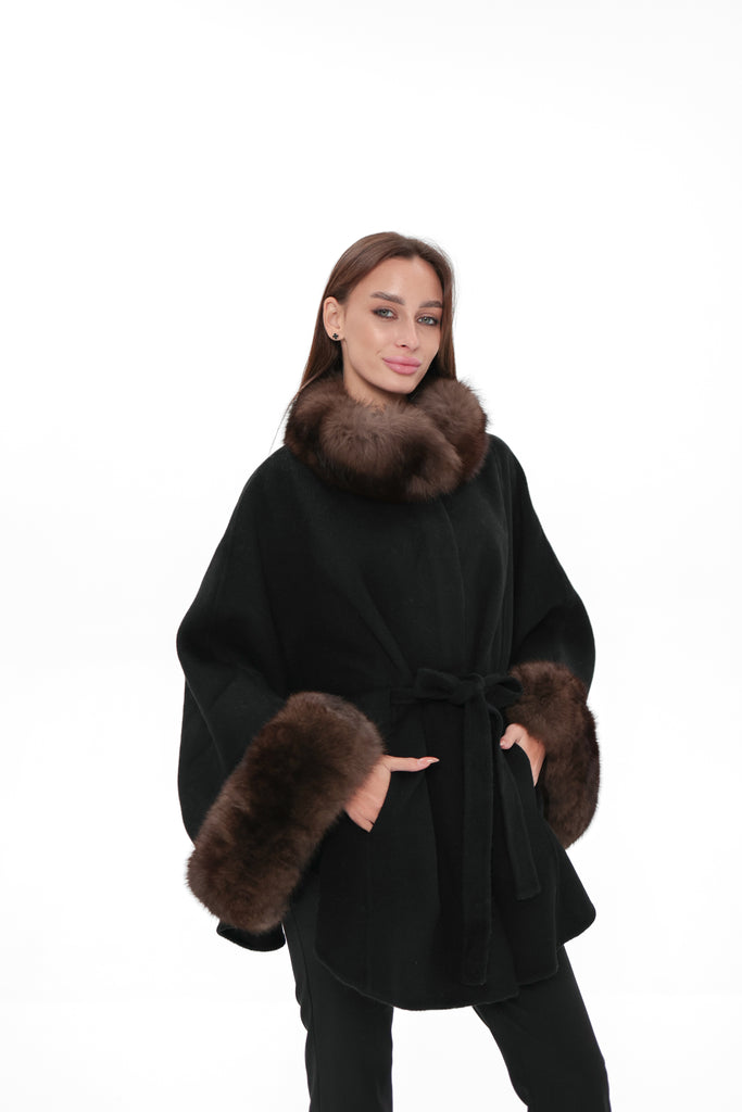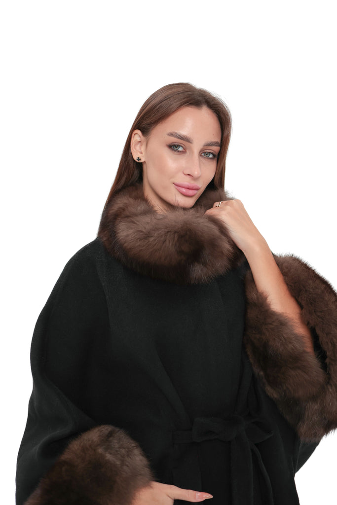 Genuine Polar Fox Fur Double Face Wool Poncho