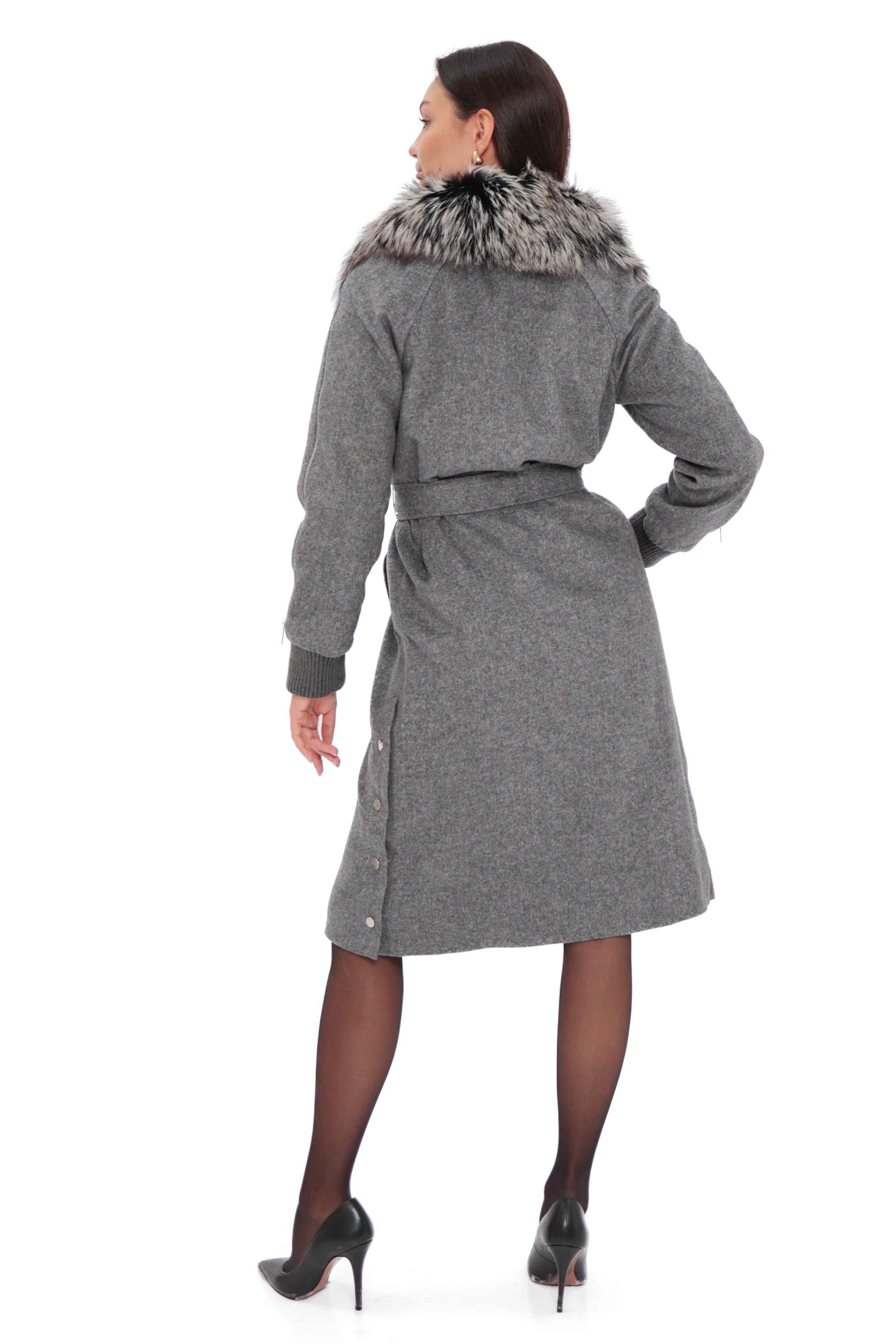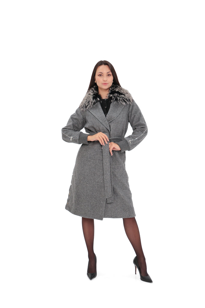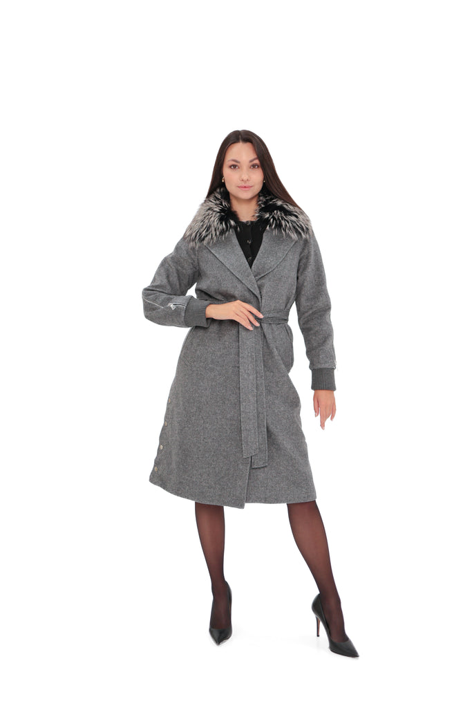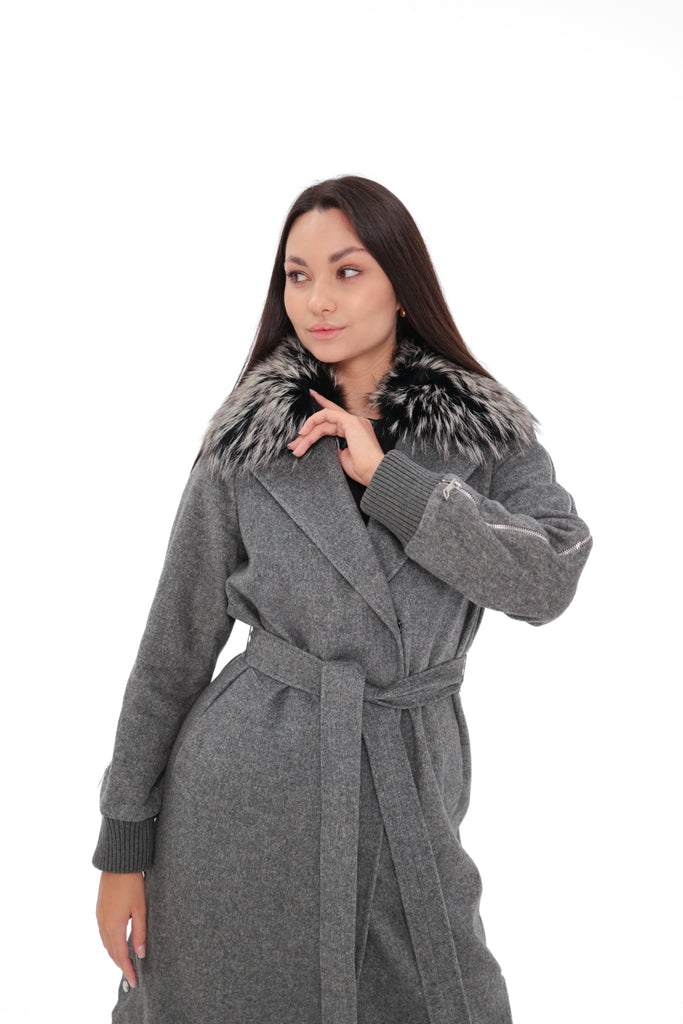 Karolina Genuine Silver Fox Wool Blend Coat