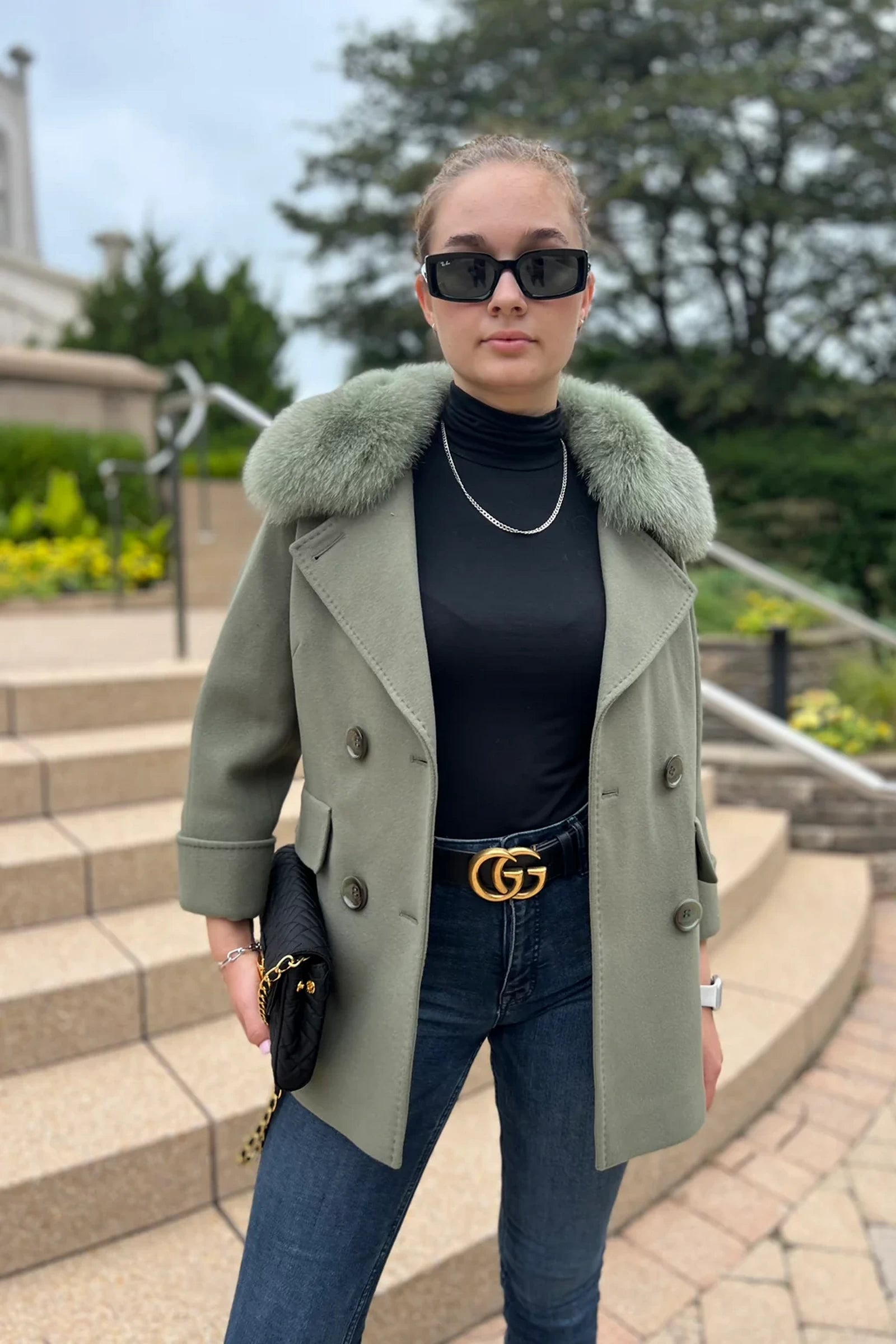Jackie Genuine Polar Fox Trim Cashmere Wool Coat
