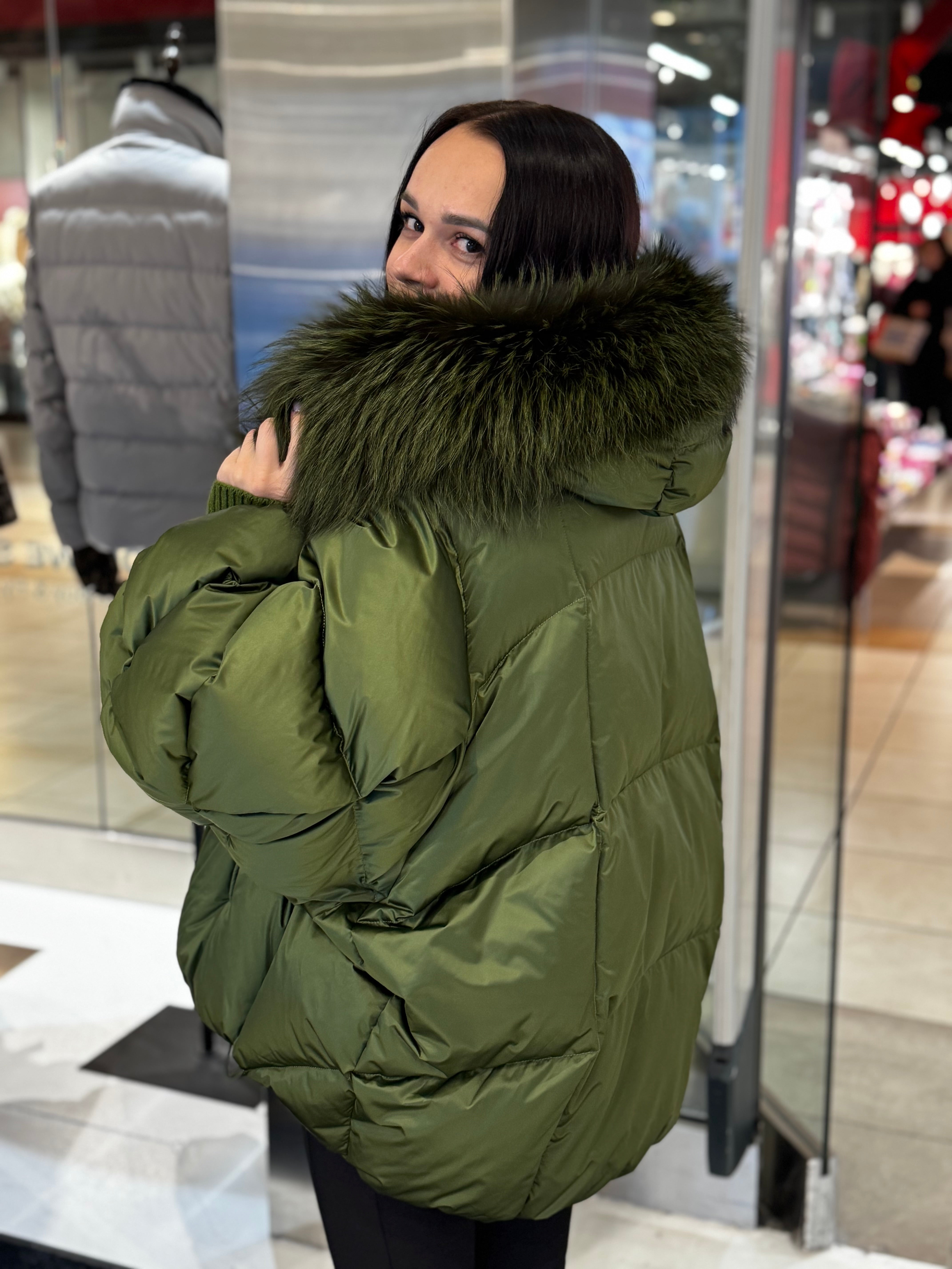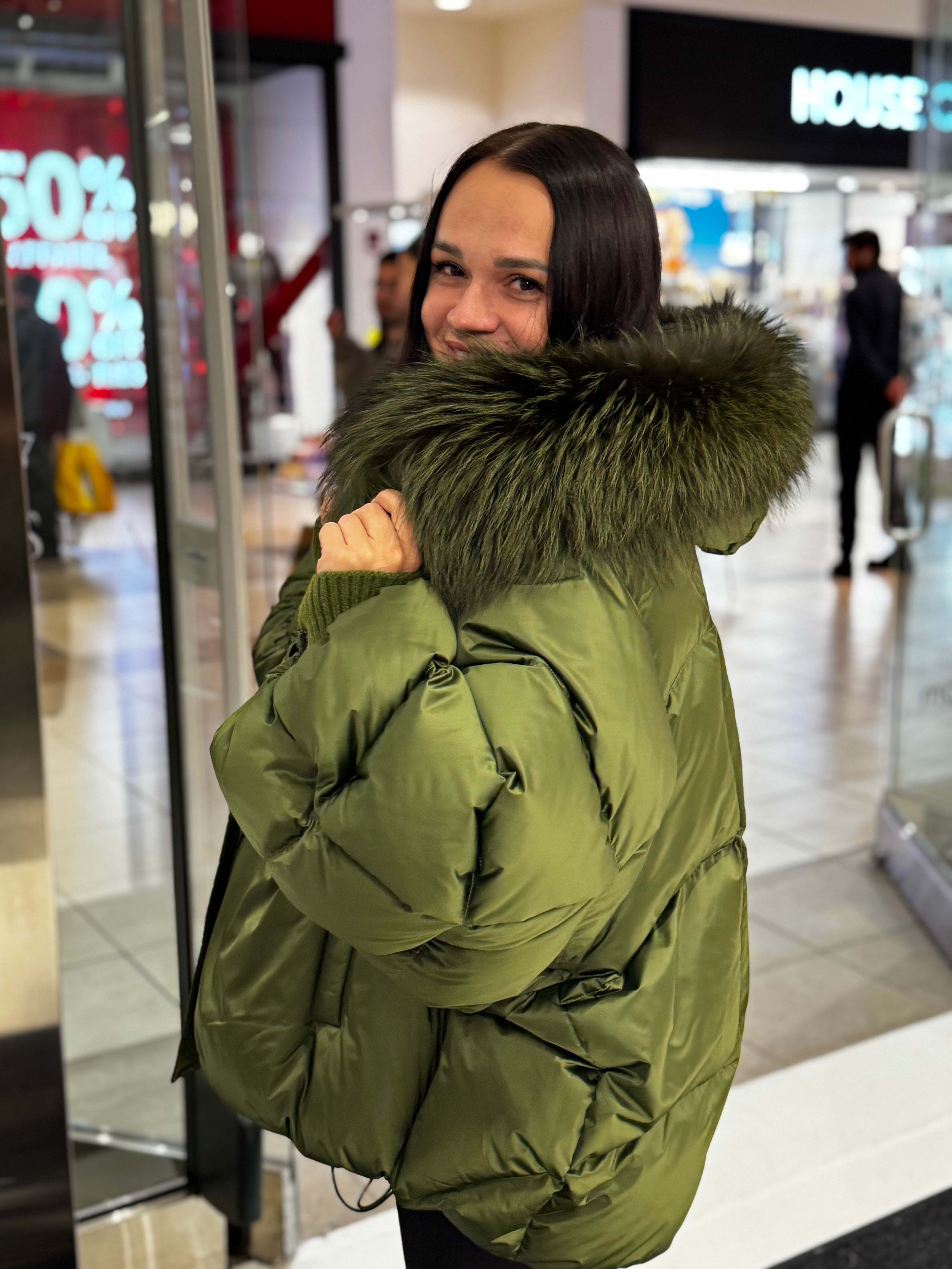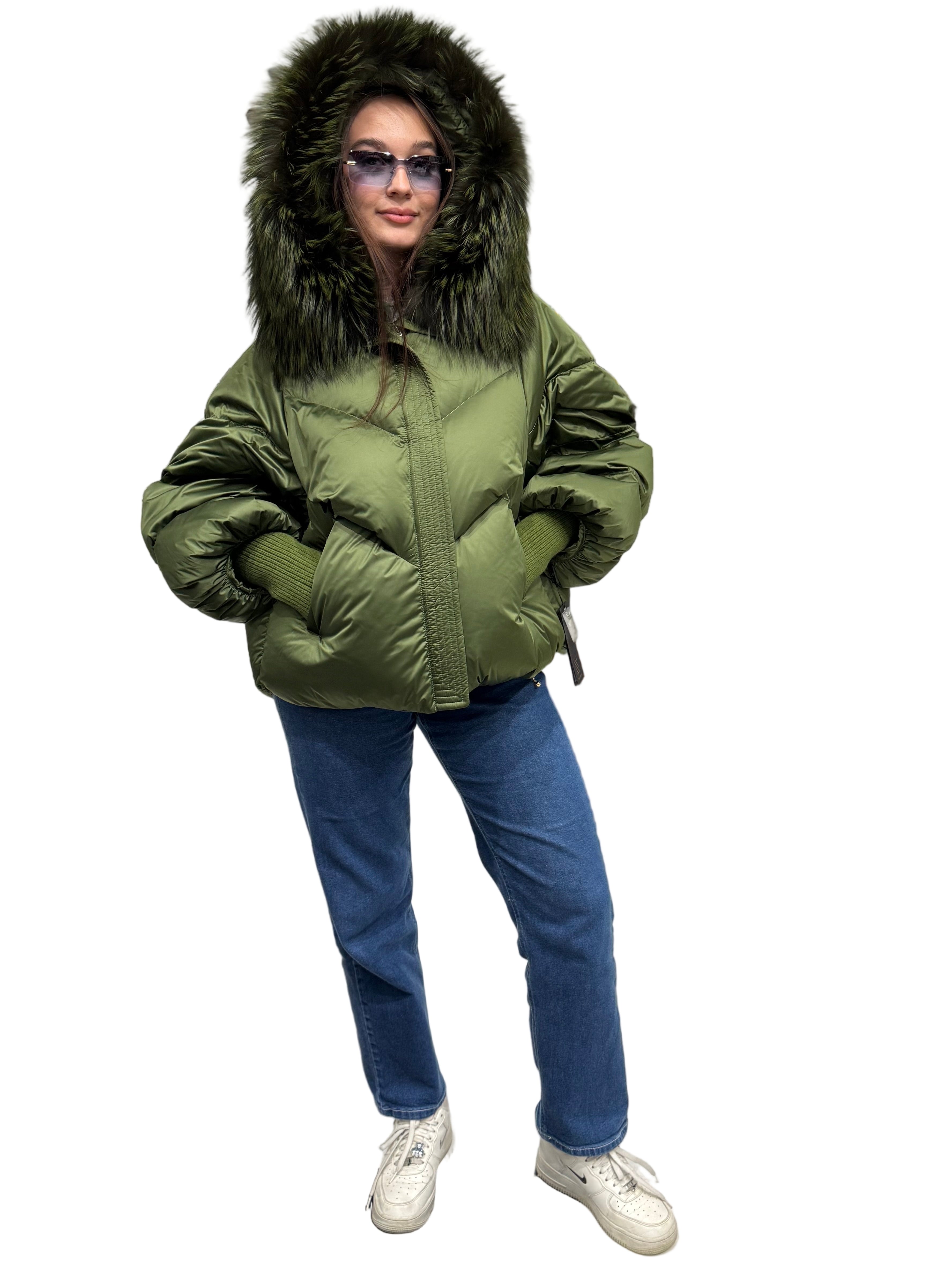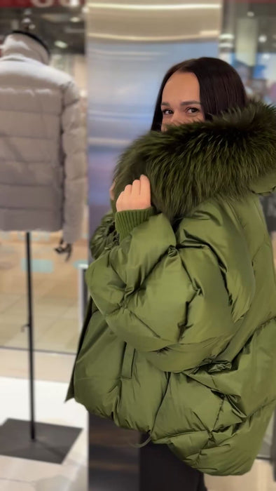 Genuine Silver Fox Fur Down Fill Coat