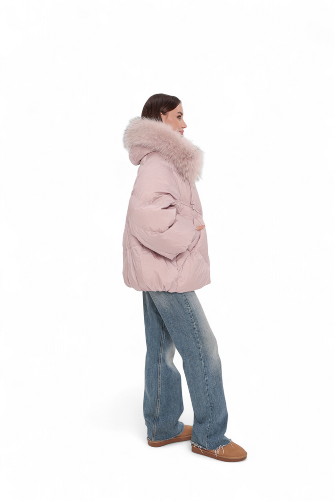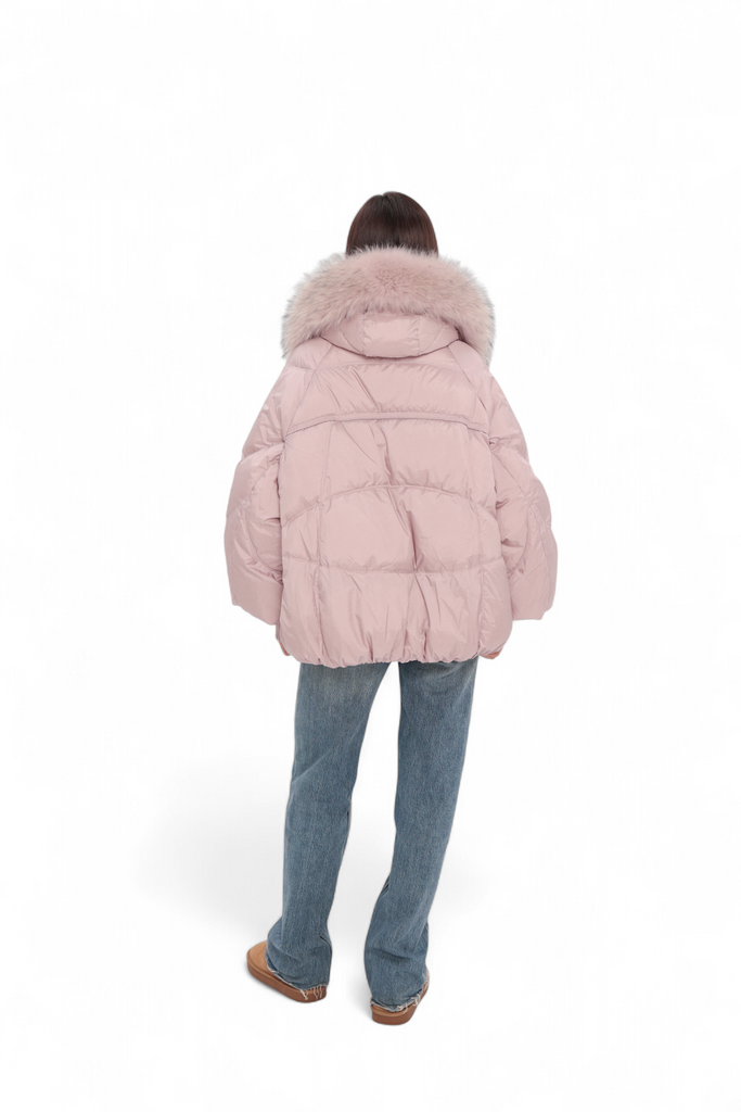 Rose Genuine Fur Trim Down Fill Coat - S / Blush is backordered and will ship as soon as it is back in stock.