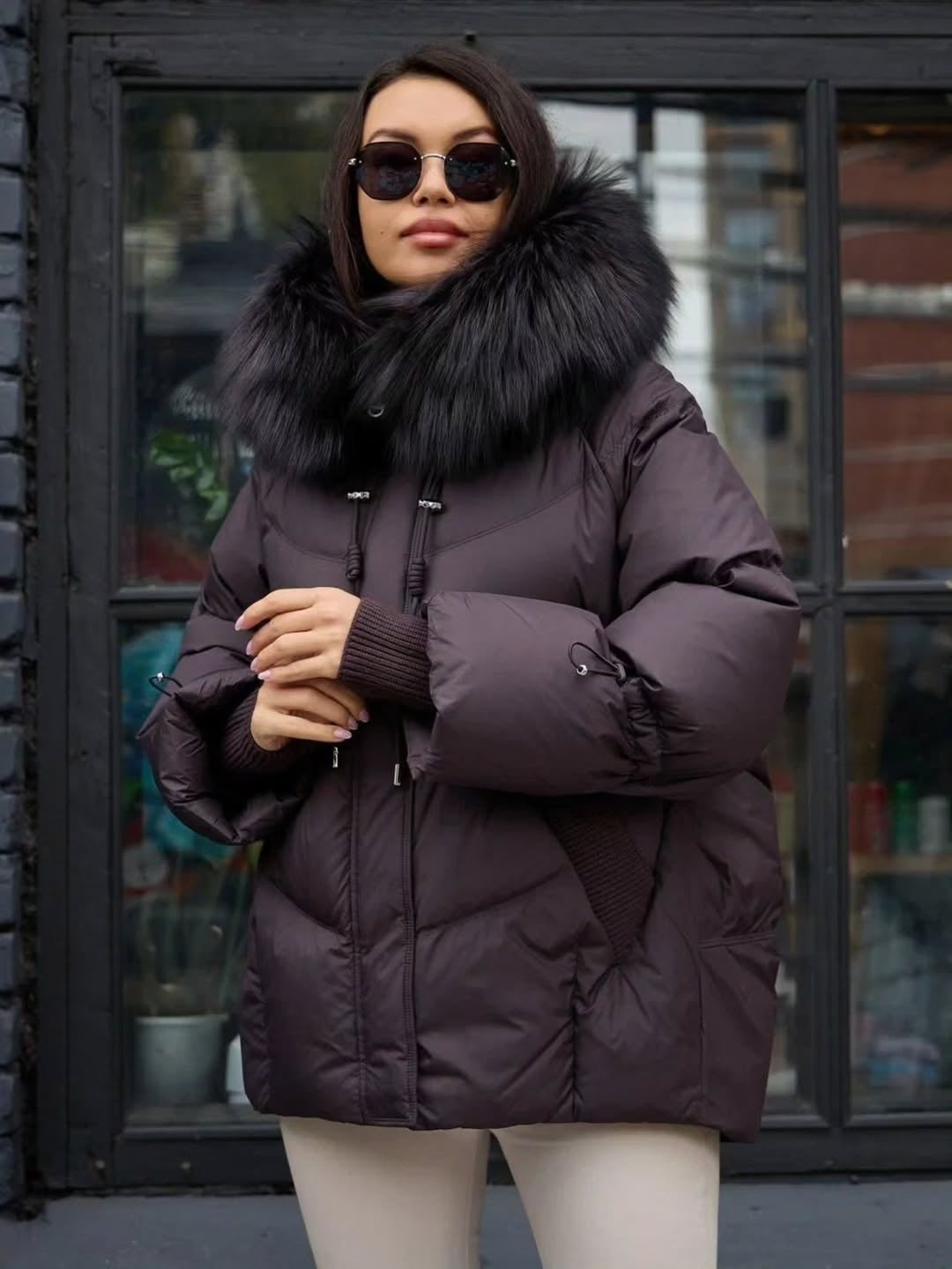 Brit Genuine Fur Trim Down Fill Coat in Fig
