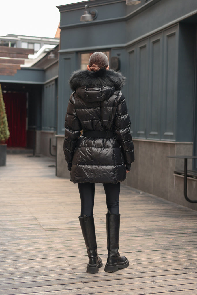 Aspen Genuine Scandinavian Mink Fur Coat with Fully Lined Mink Hood in Black