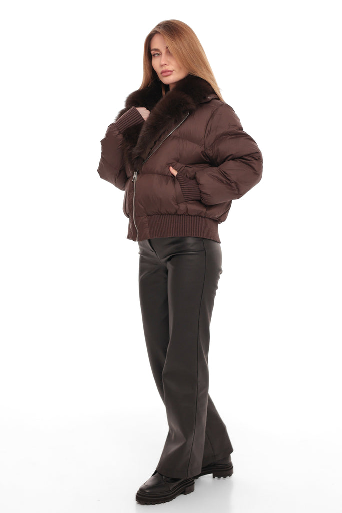 Genuine Polar Fox Down Fill Jacket in Chocolate