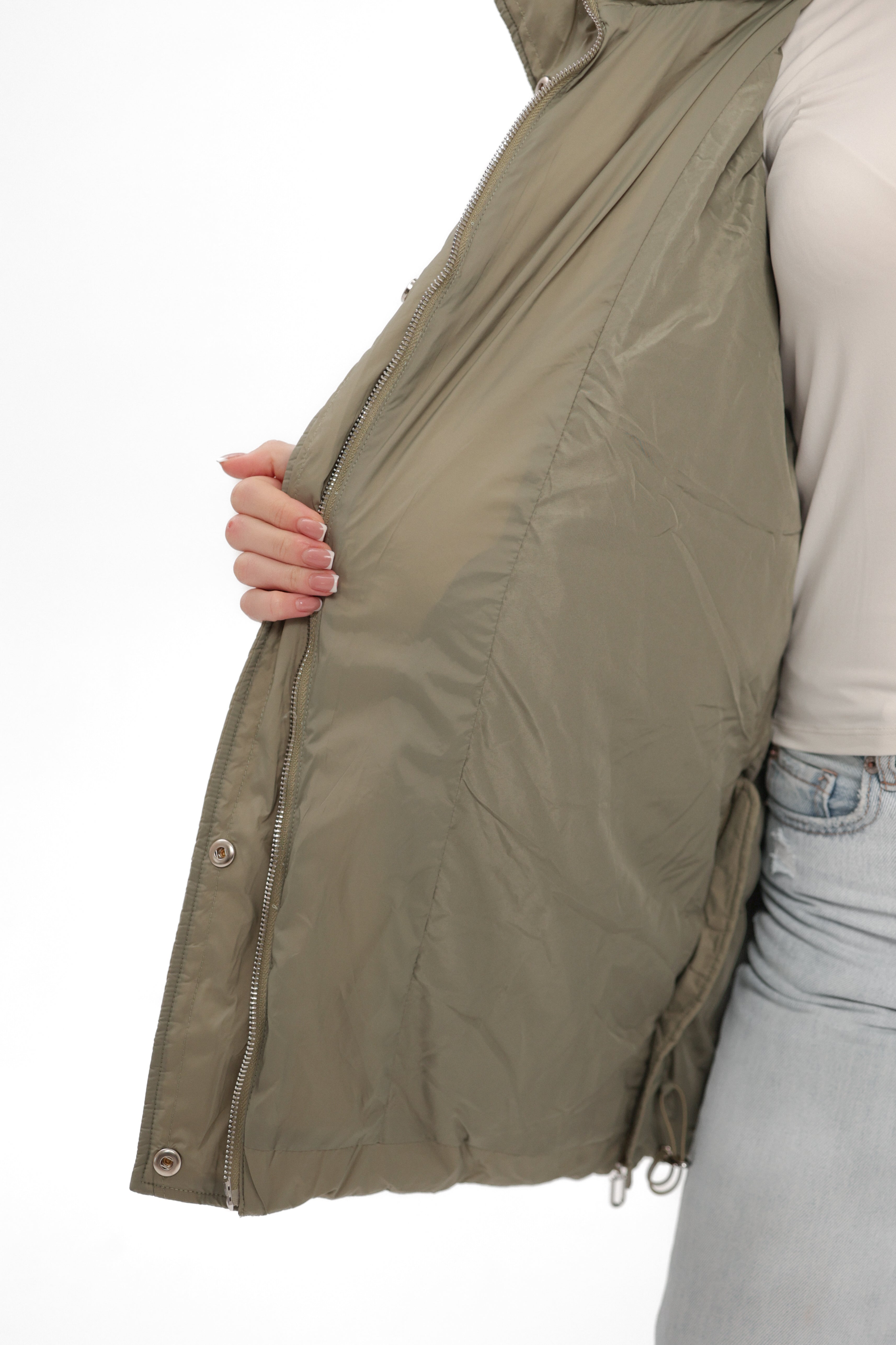 • A functional drawcord at the hem, allowing you to cinch it in for added warmth and protection against wind and snow