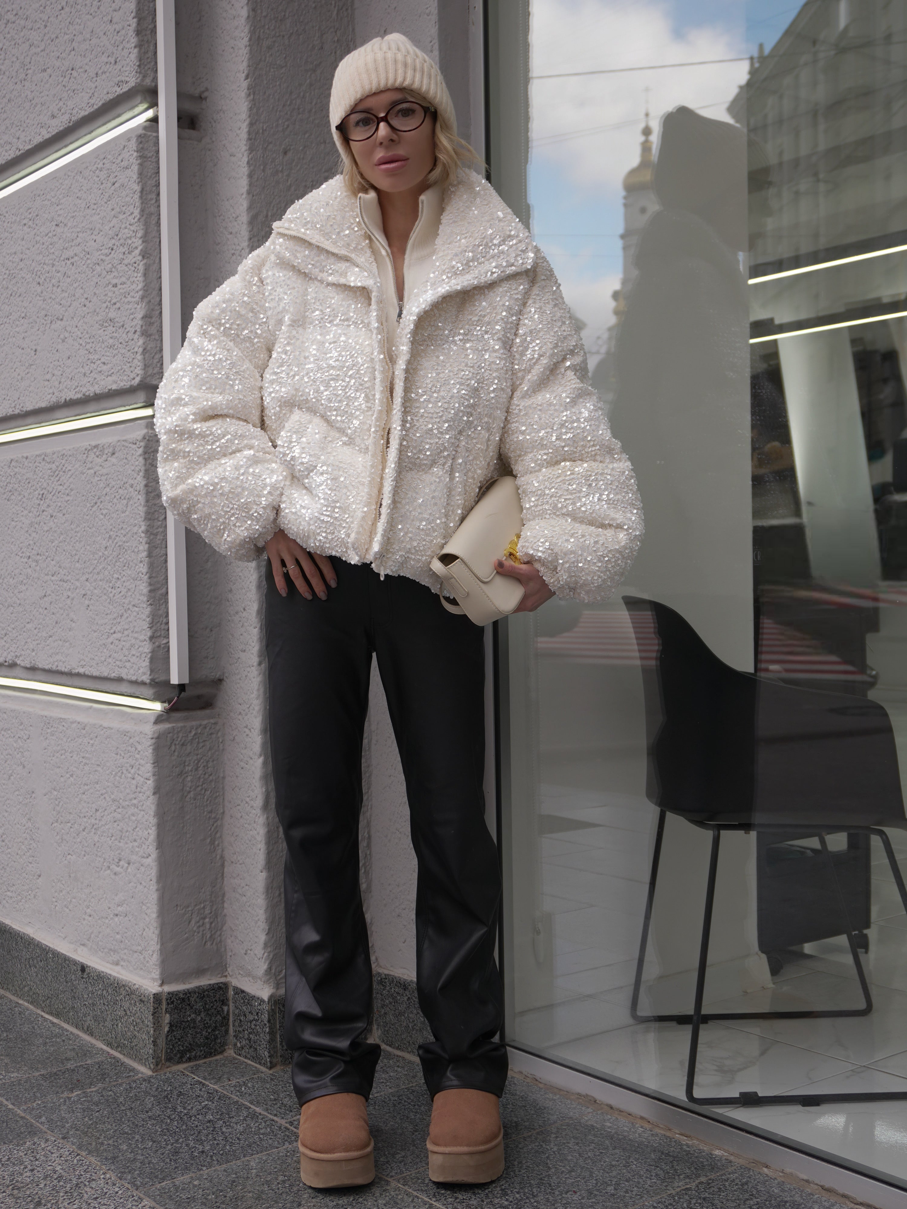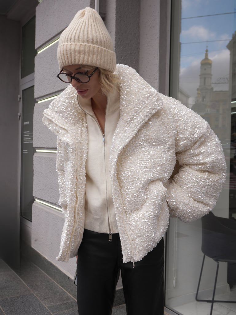 • Fully covered in iridescent sequins for a radiant, high-shine effect