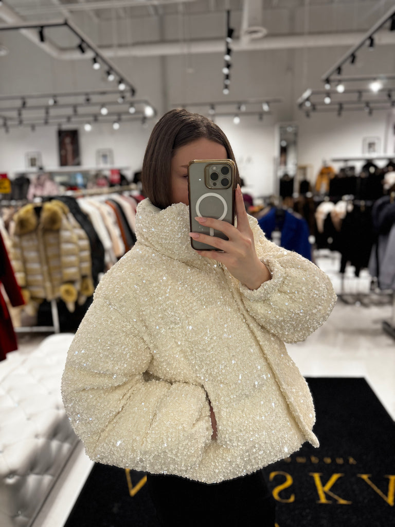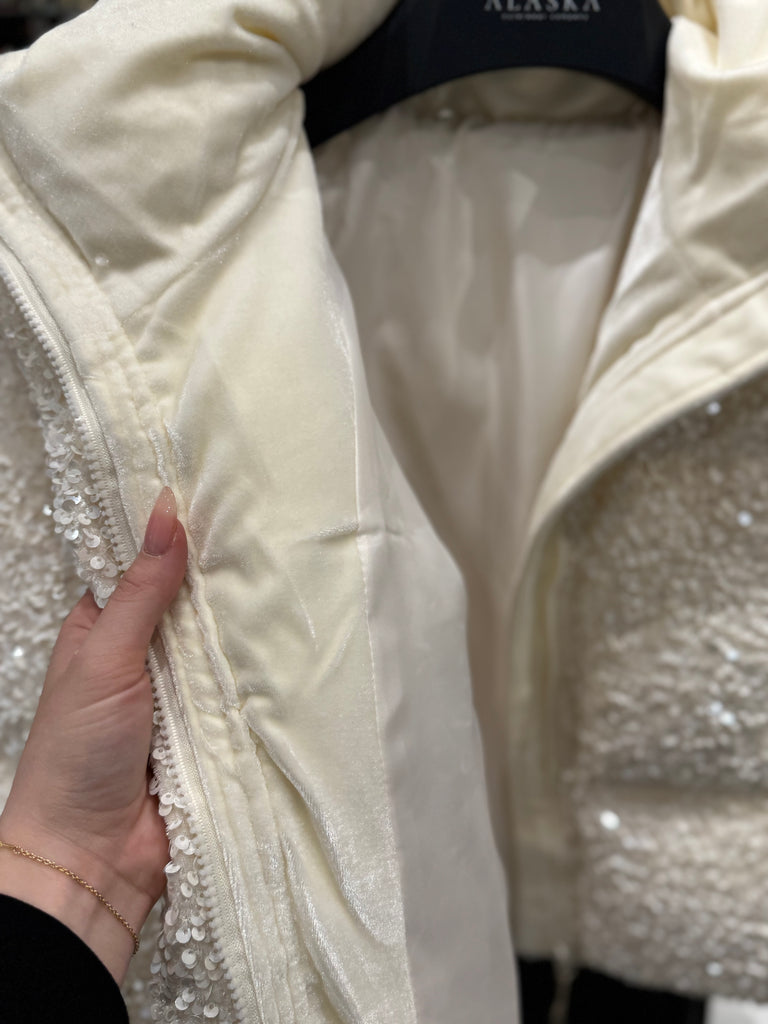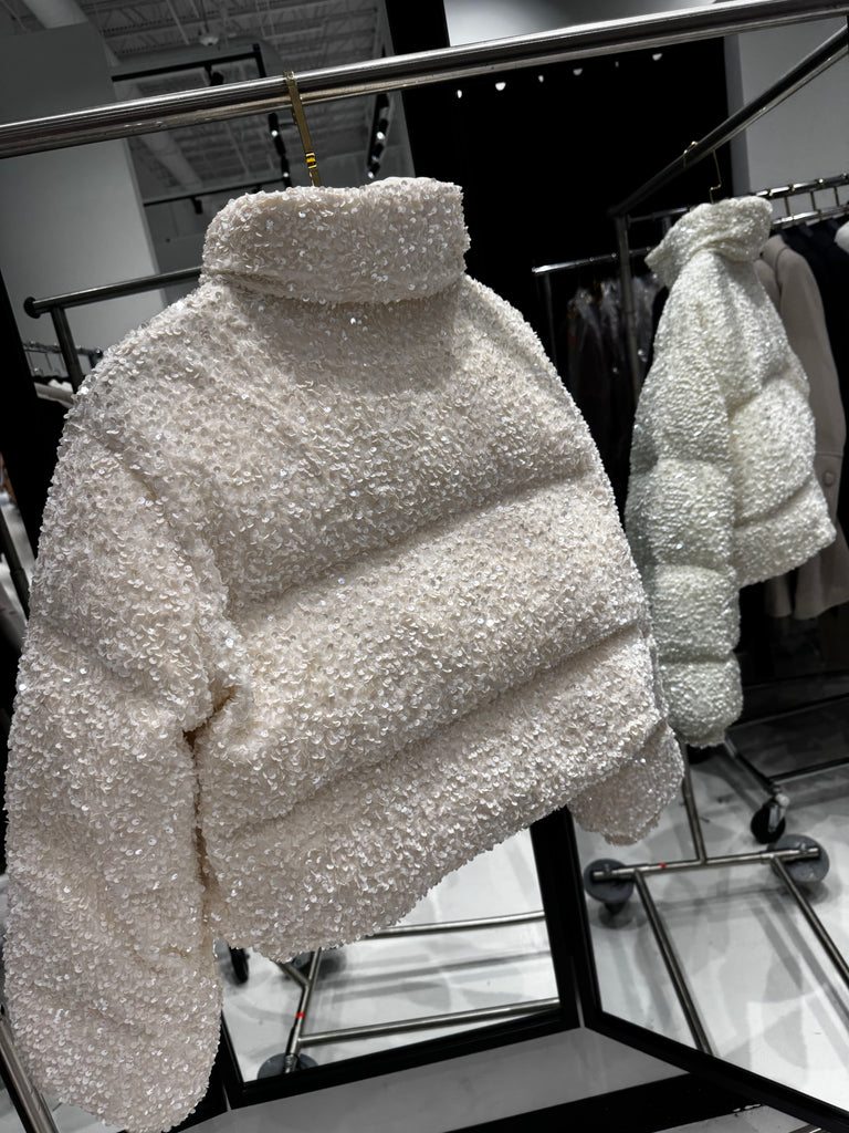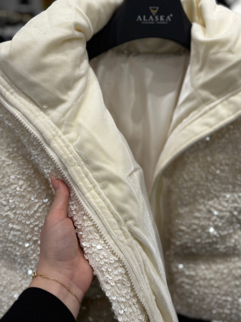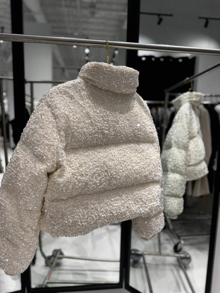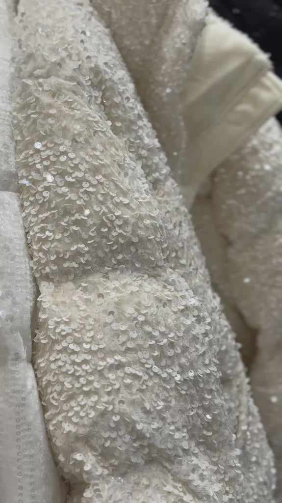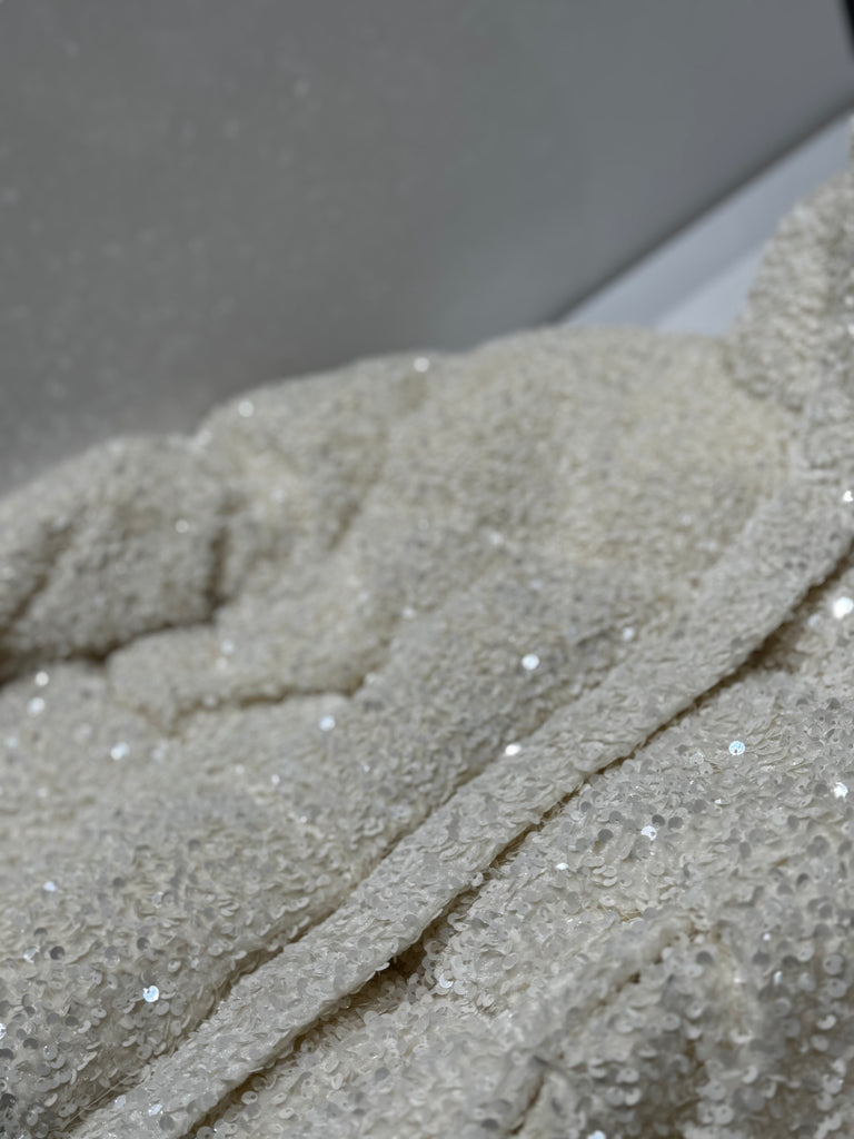 • Fully covered in iridescent sequins for a radiant, high-shine effect