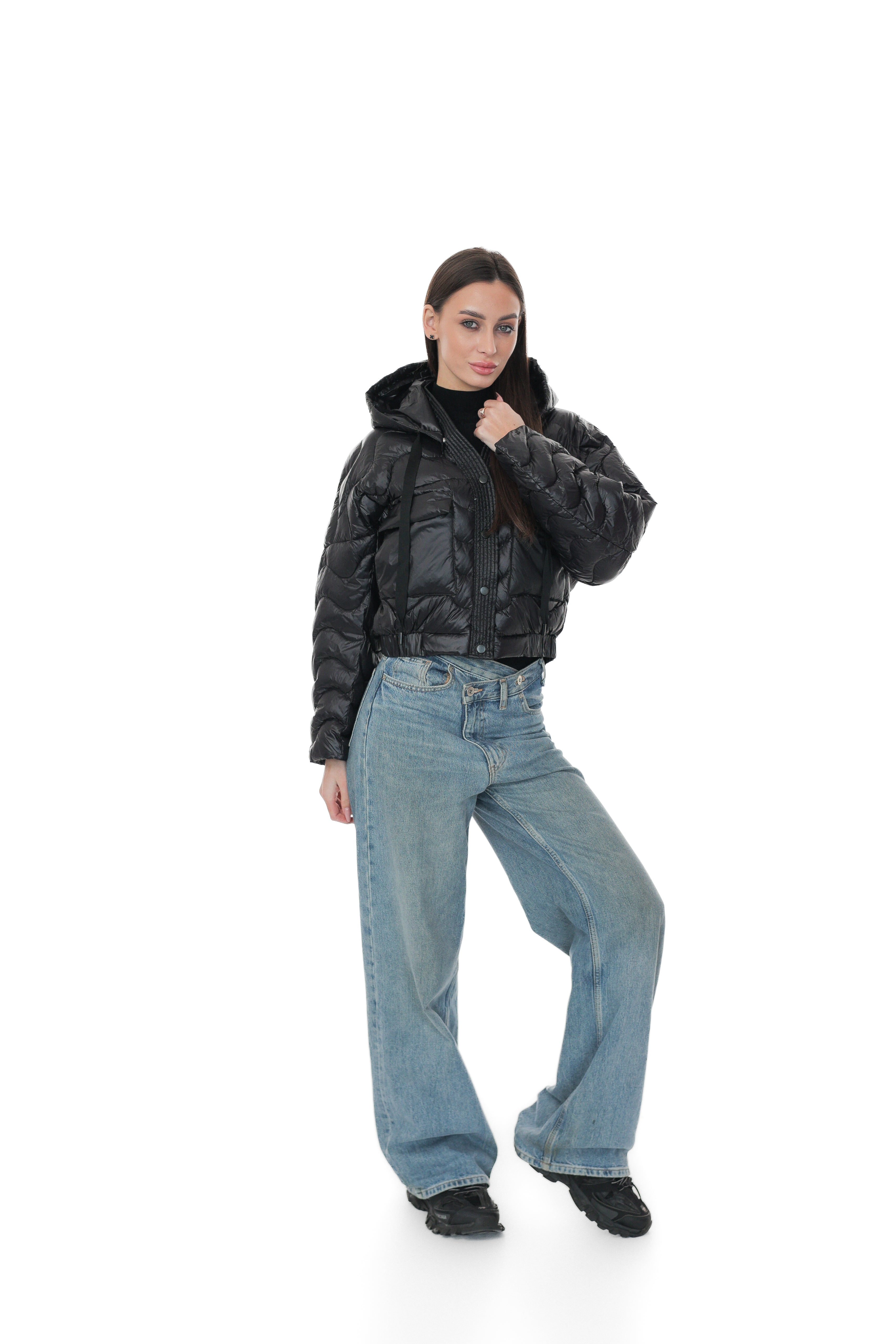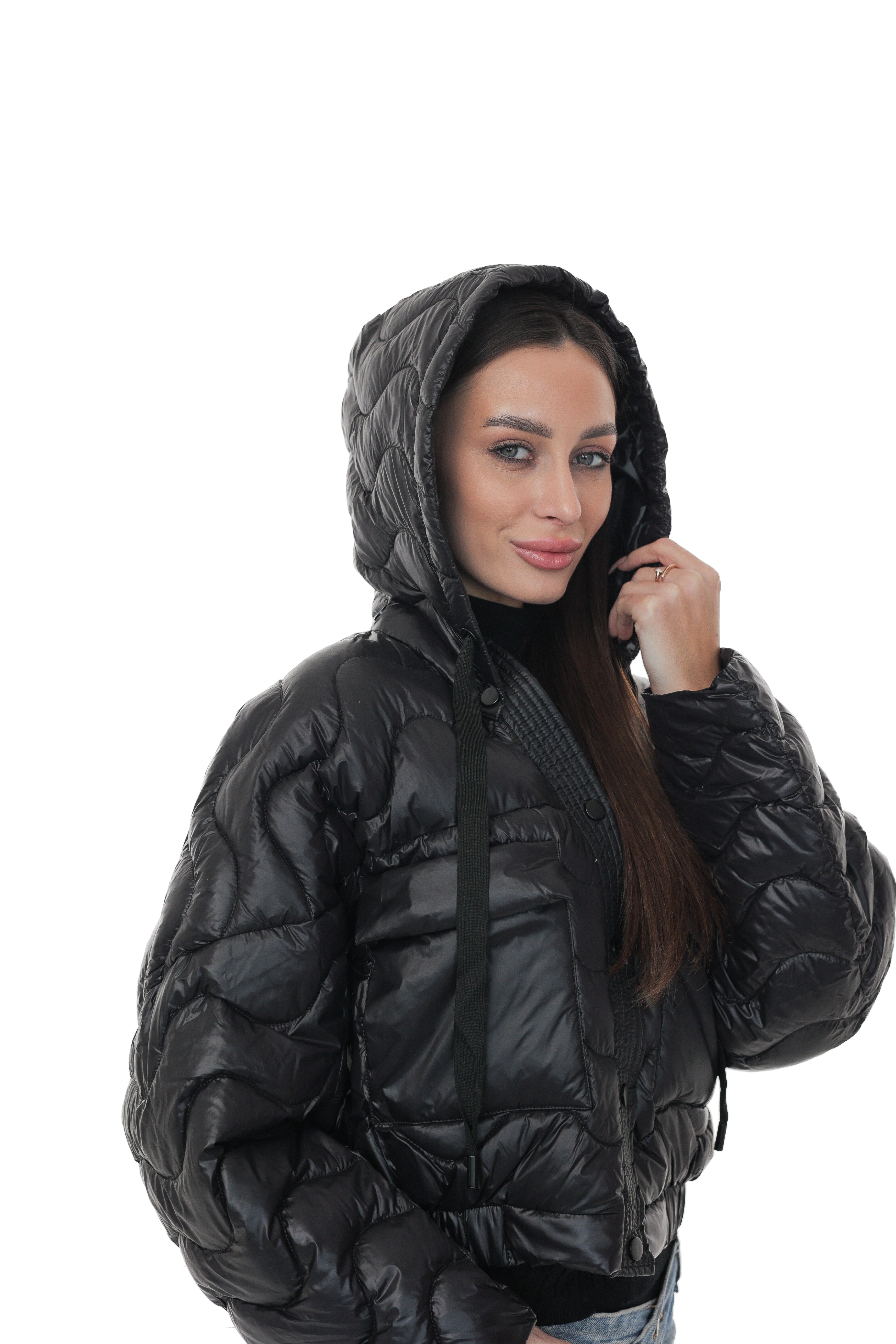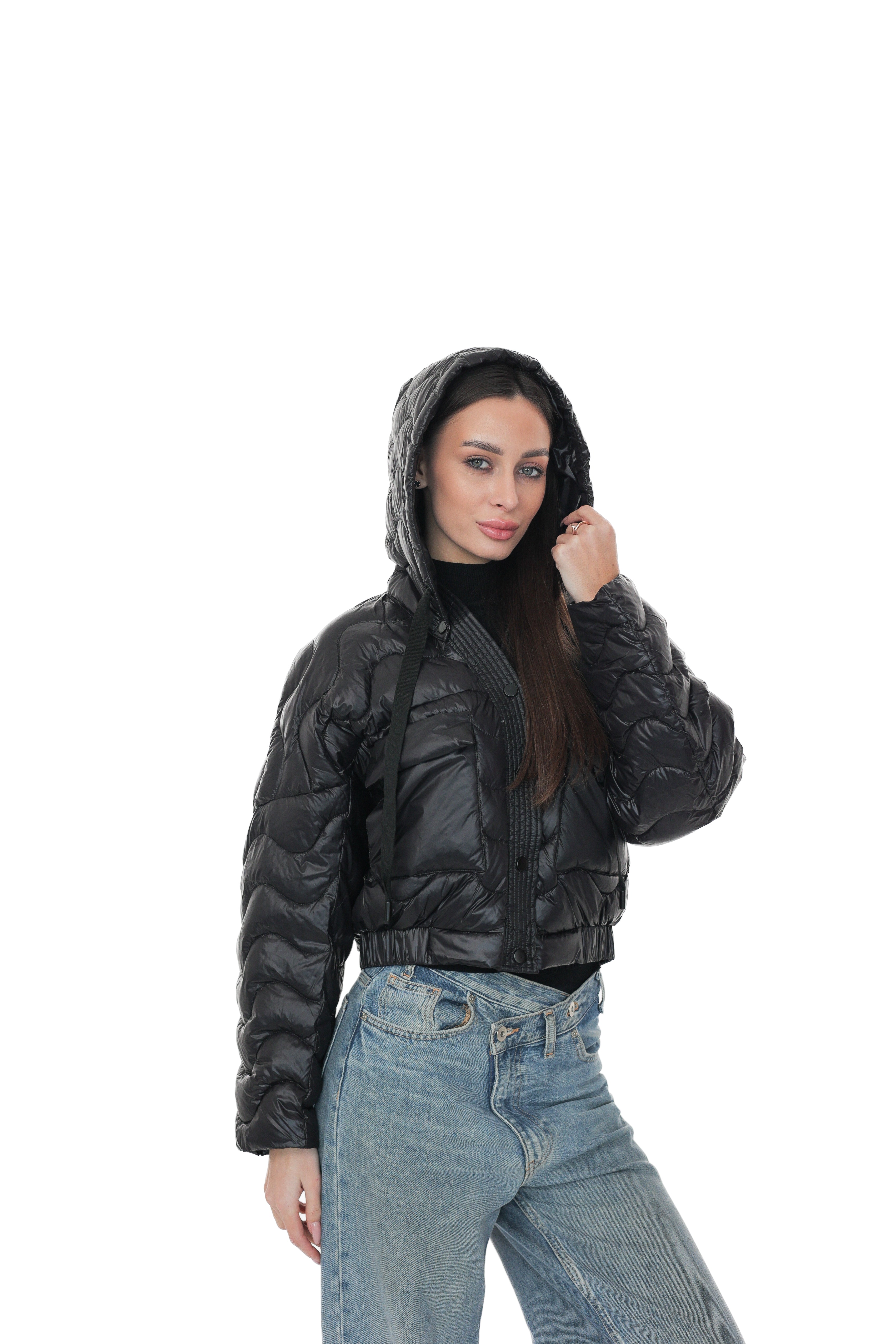 Effortlessly stylish and versatile, this lightweight cropped bomber is your go-to layer for in-between seasons. Crafted from breathable yet durable fabric, it offers comfort without bulk. The classic bomber silhouette is elevated with a modern cropped length, while the detachable hood gives you two looks in one—wear it for a sporty vibe or remove it for a sleek, streamlined finish. Perfect for layering over casual outfits or adding an edge to your evening look.