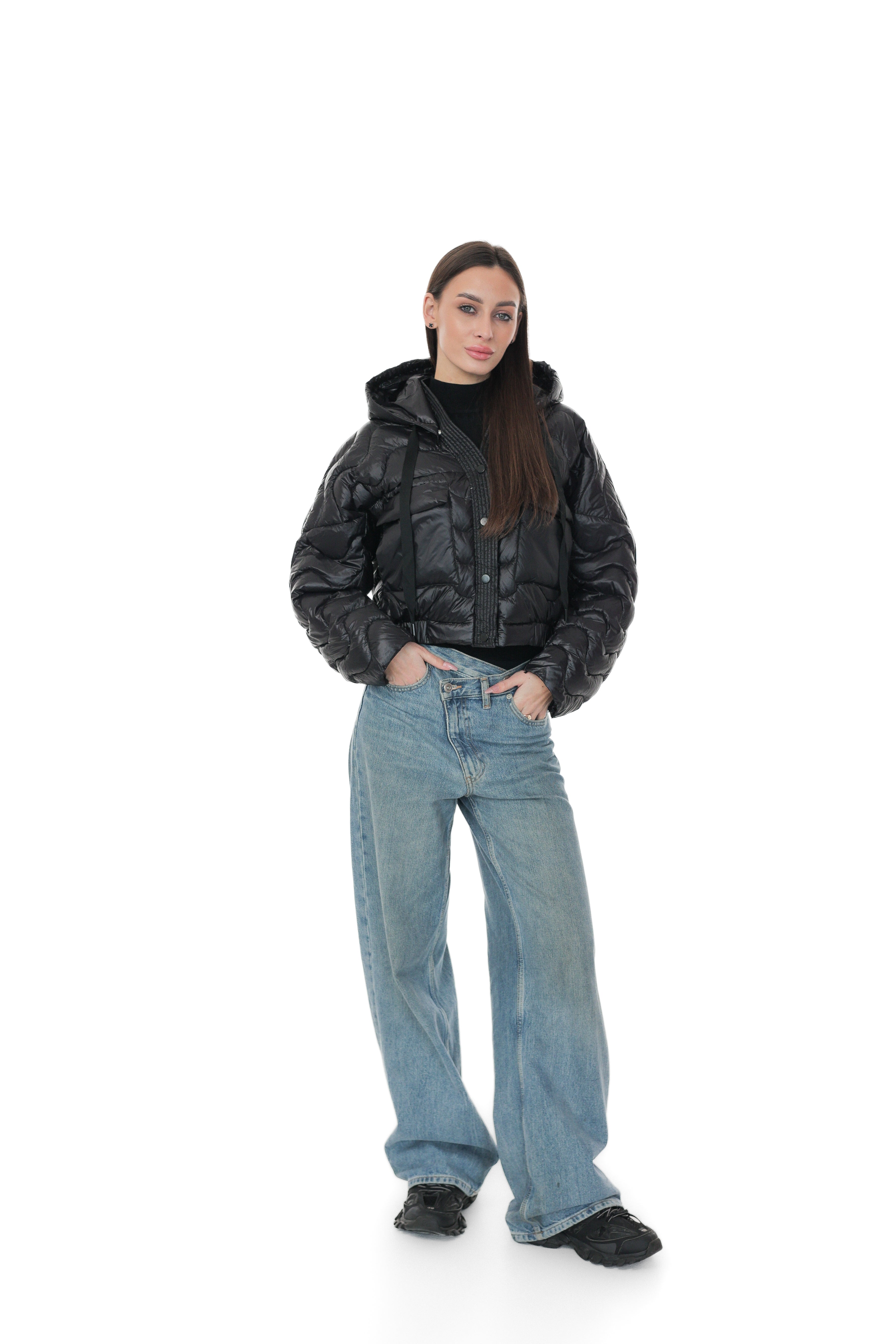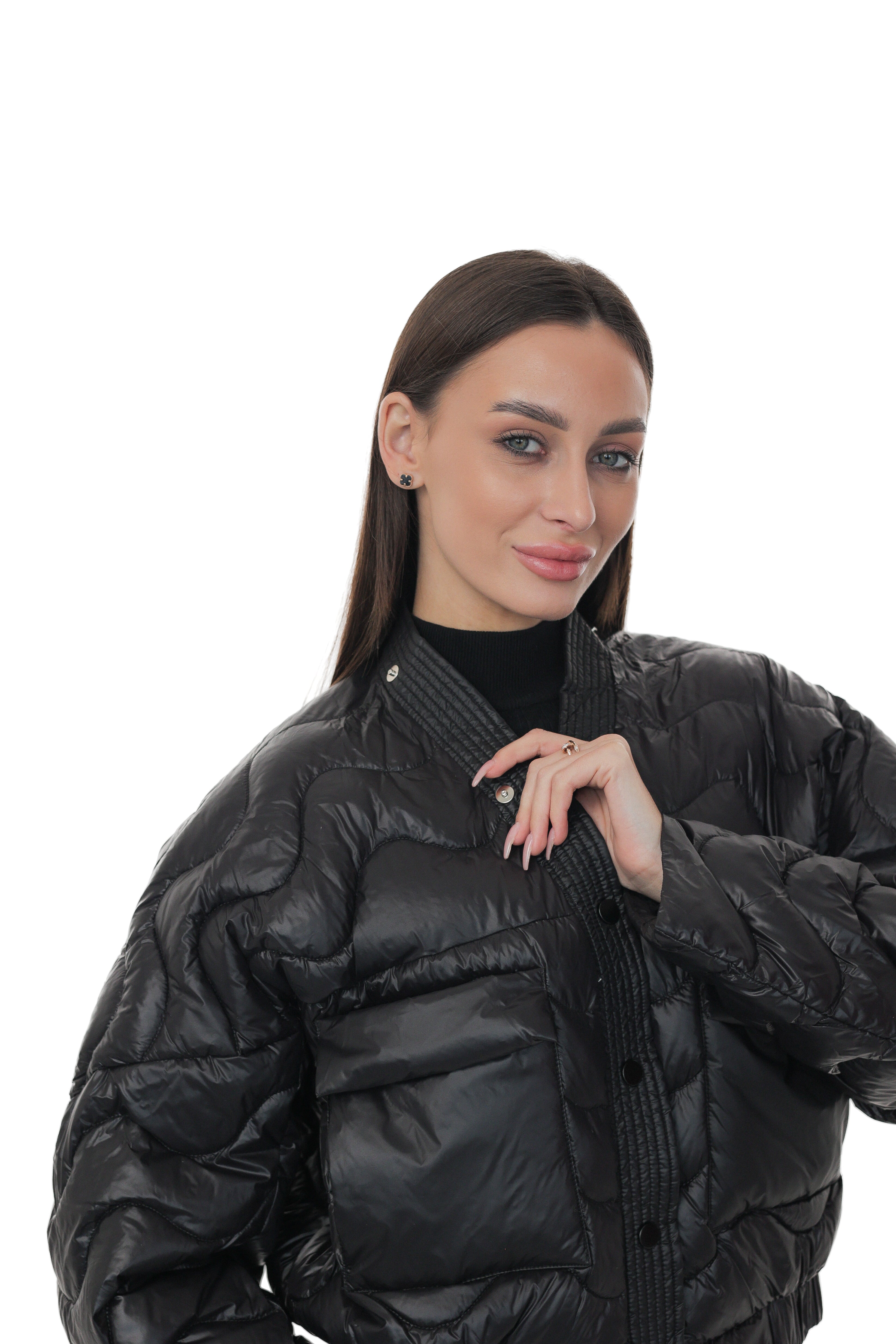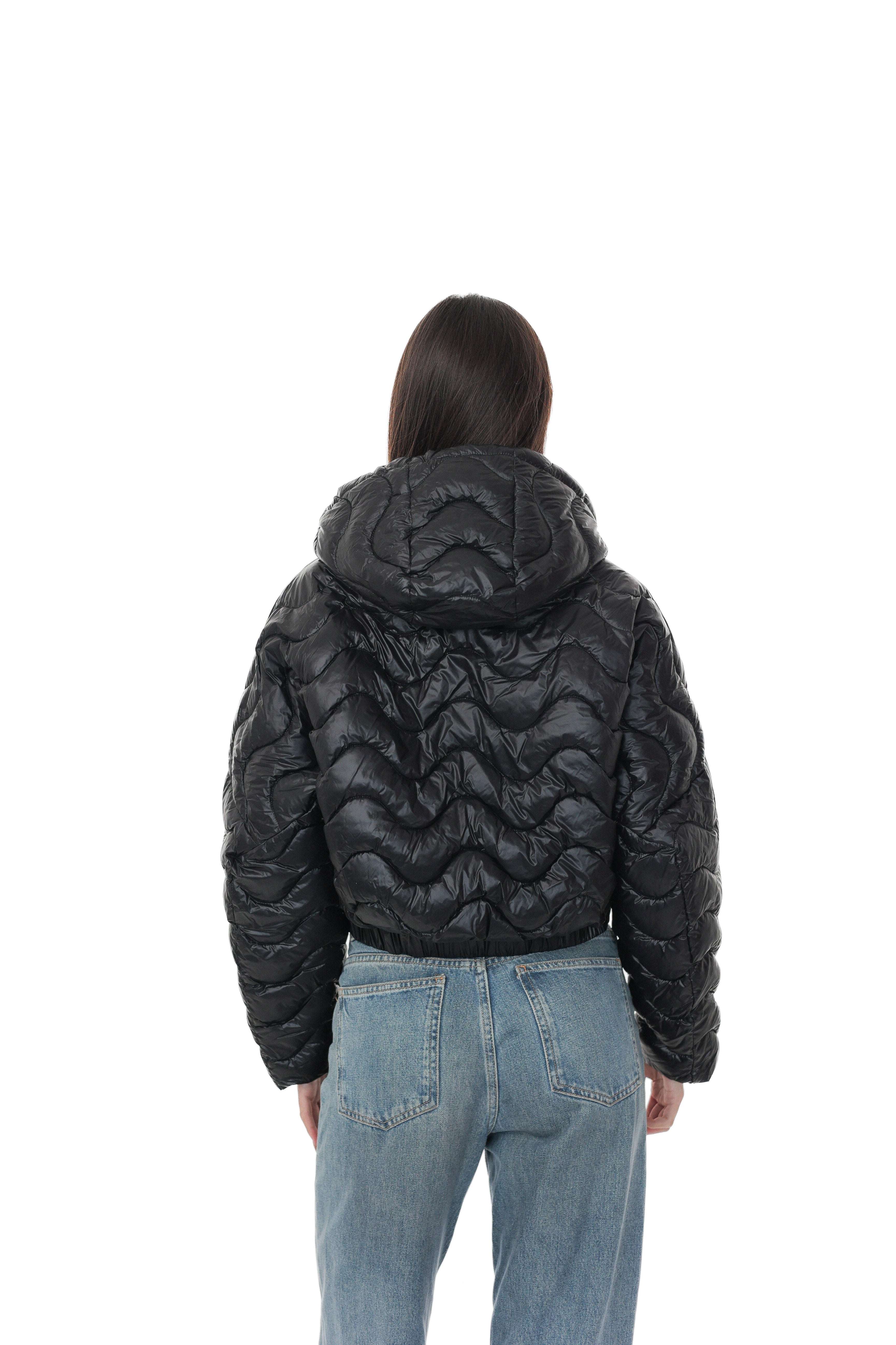 Effortlessly stylish and versatile, this lightweight cropped bomber is your go-to layer for in-between seasons. Crafted from breathable yet durable fabric, it offers comfort without bulk. The classic bomber silhouette is elevated with a modern cropped length, while the detachable hood gives you two looks in one—wear it for a sporty vibe or remove it for a sleek, streamlined finish. Perfect for layering over casual outfits or adding an edge to your evening look.