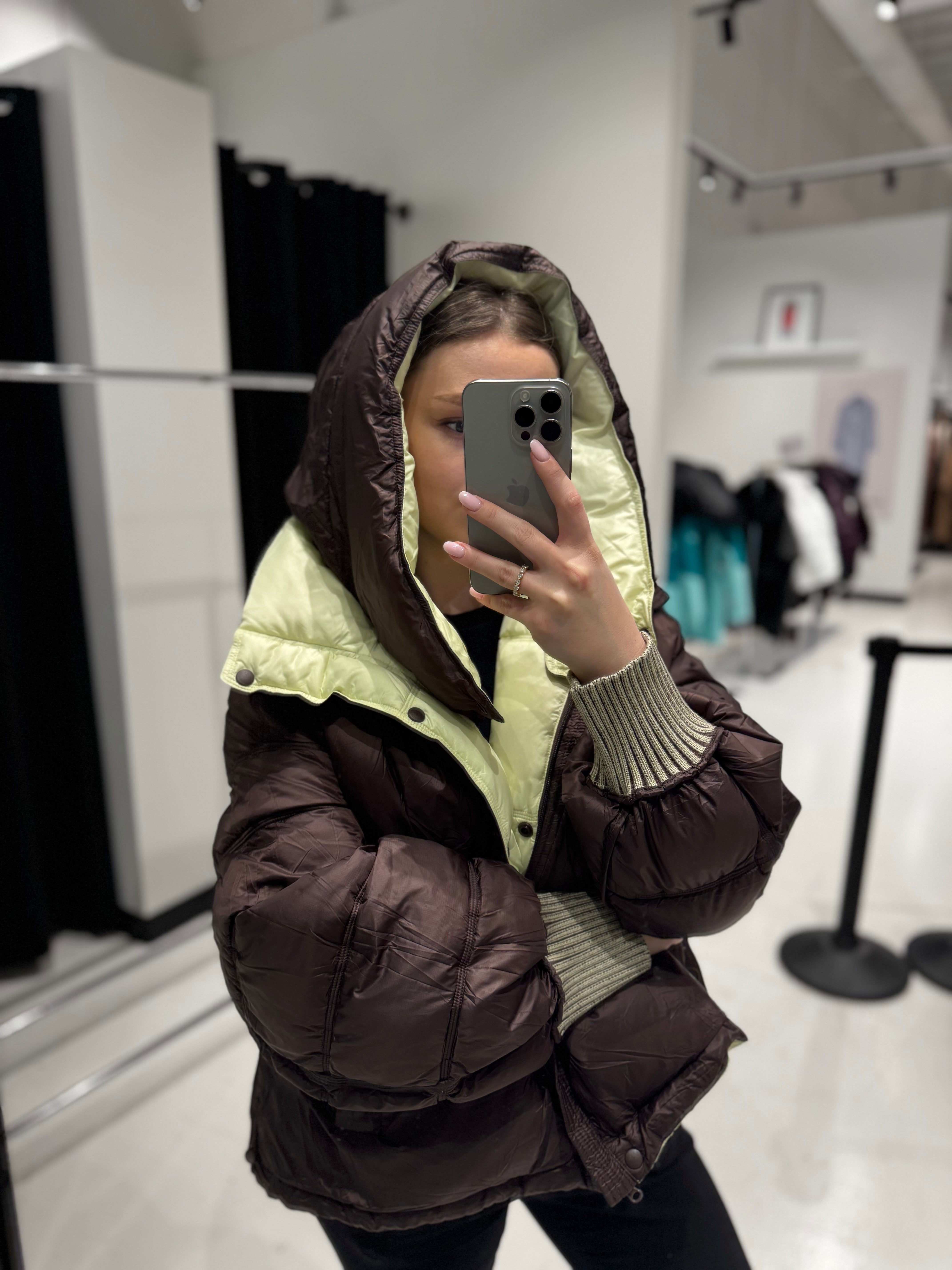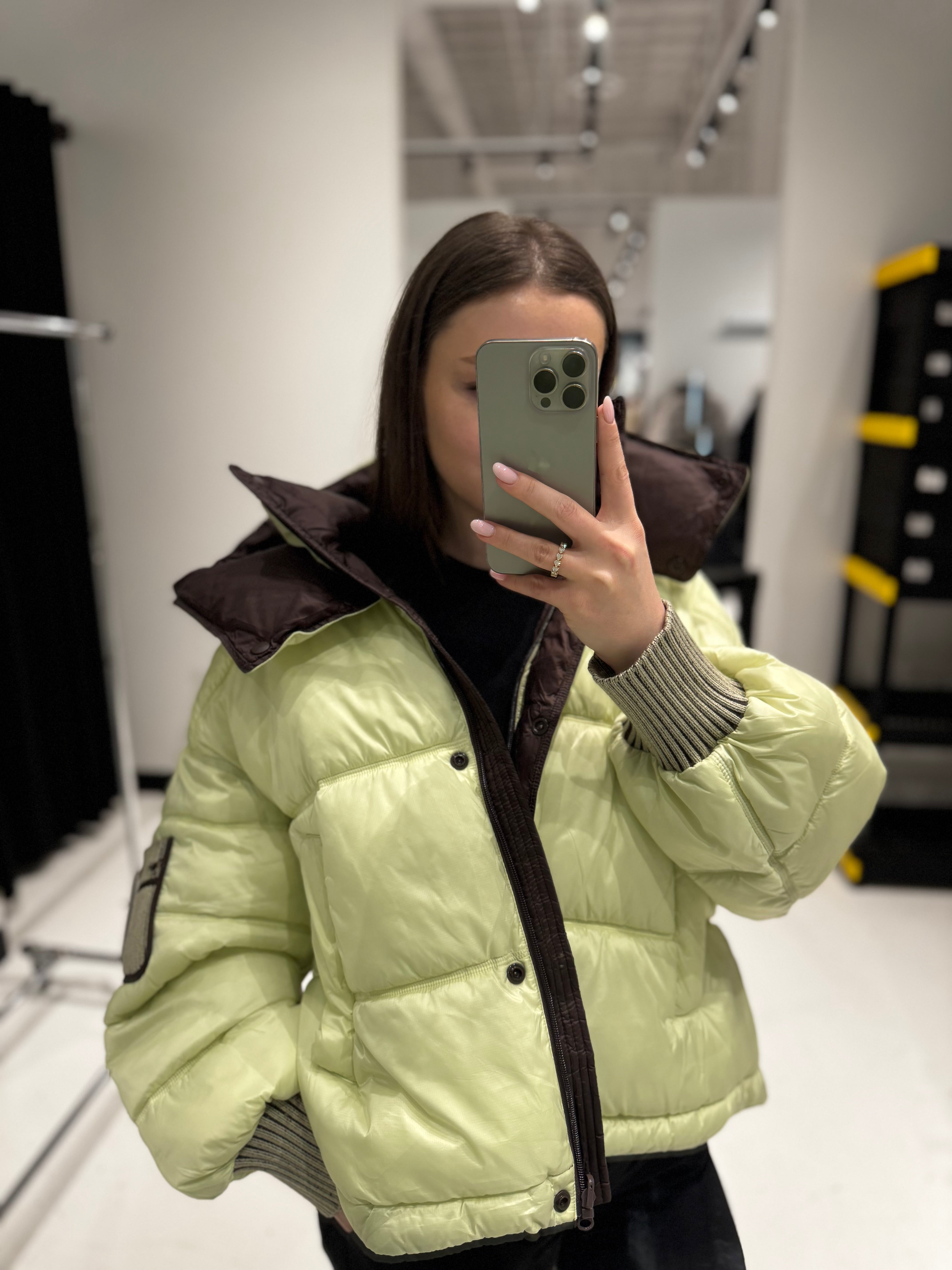 ⇆ Reversible Hooded Bio-Down Jacket in Lemon/Chocolate