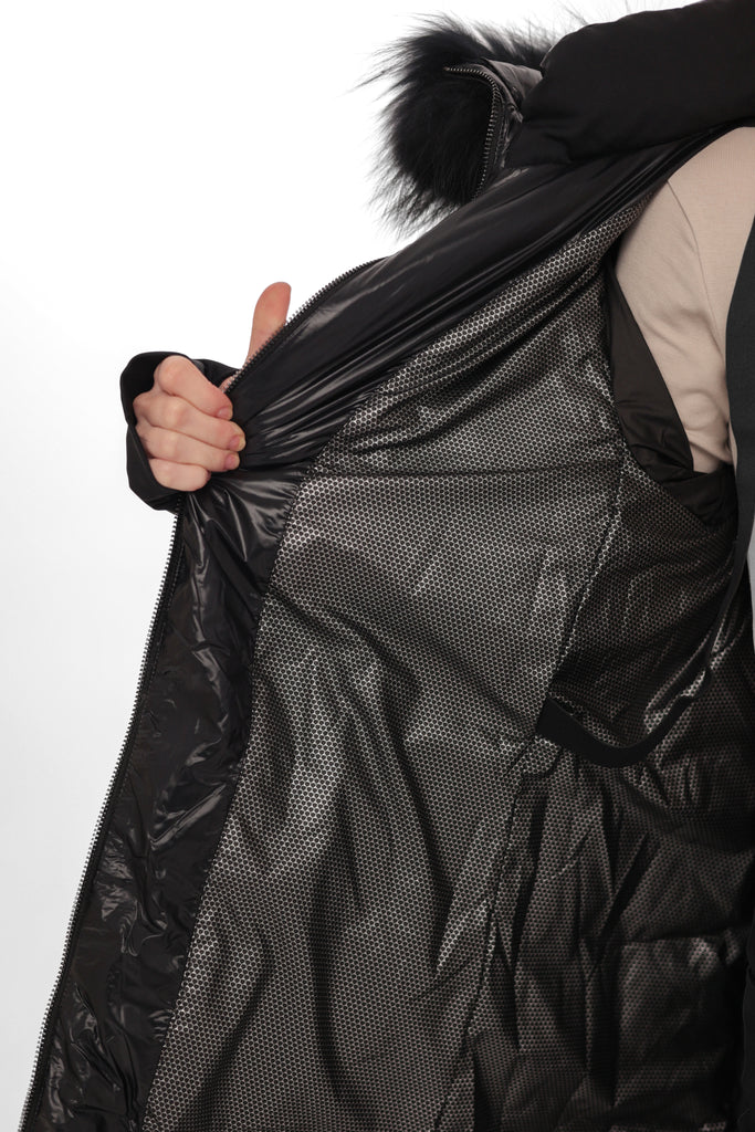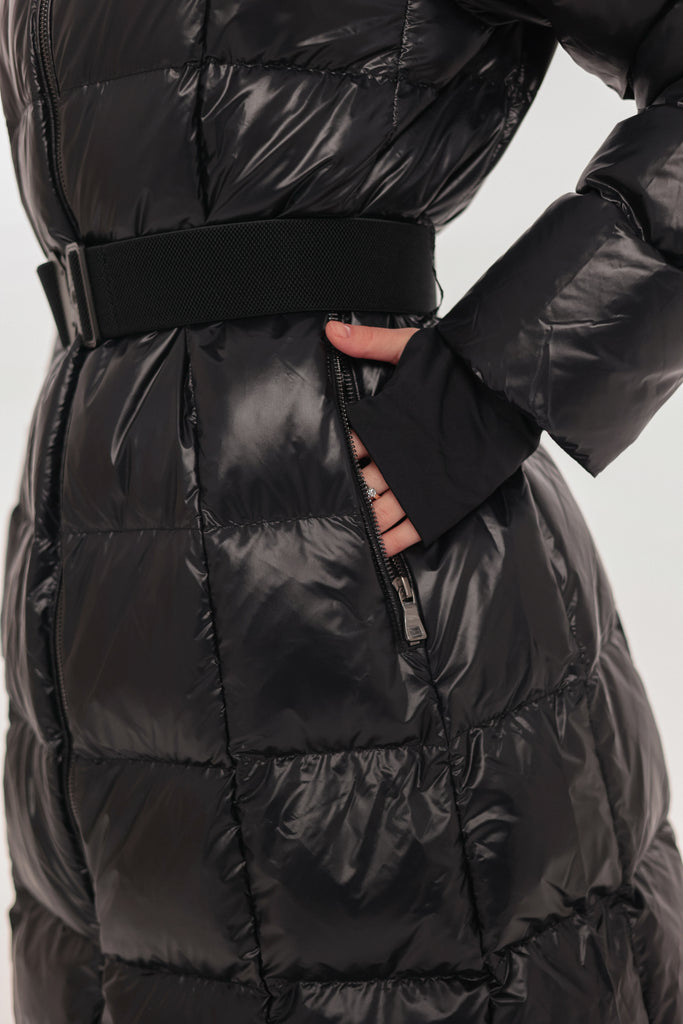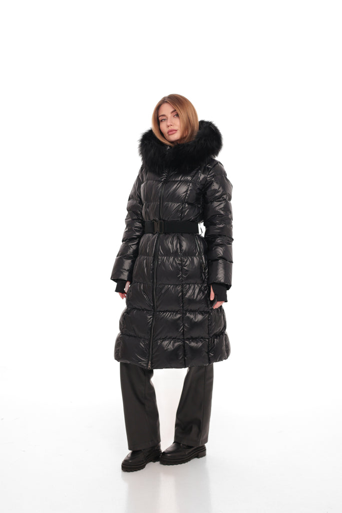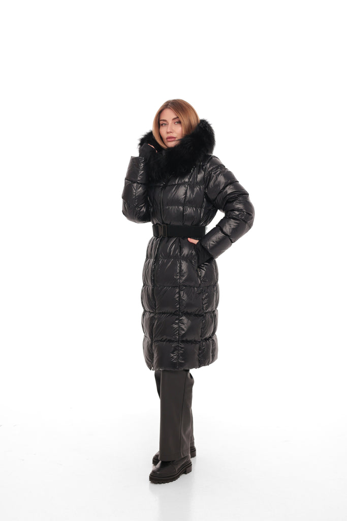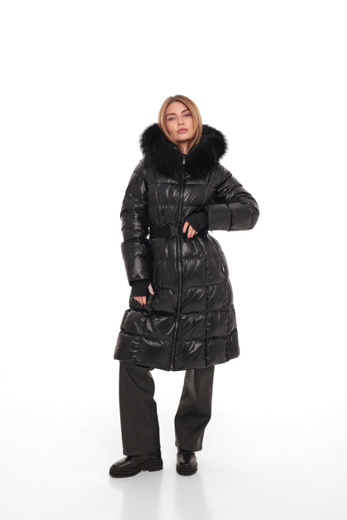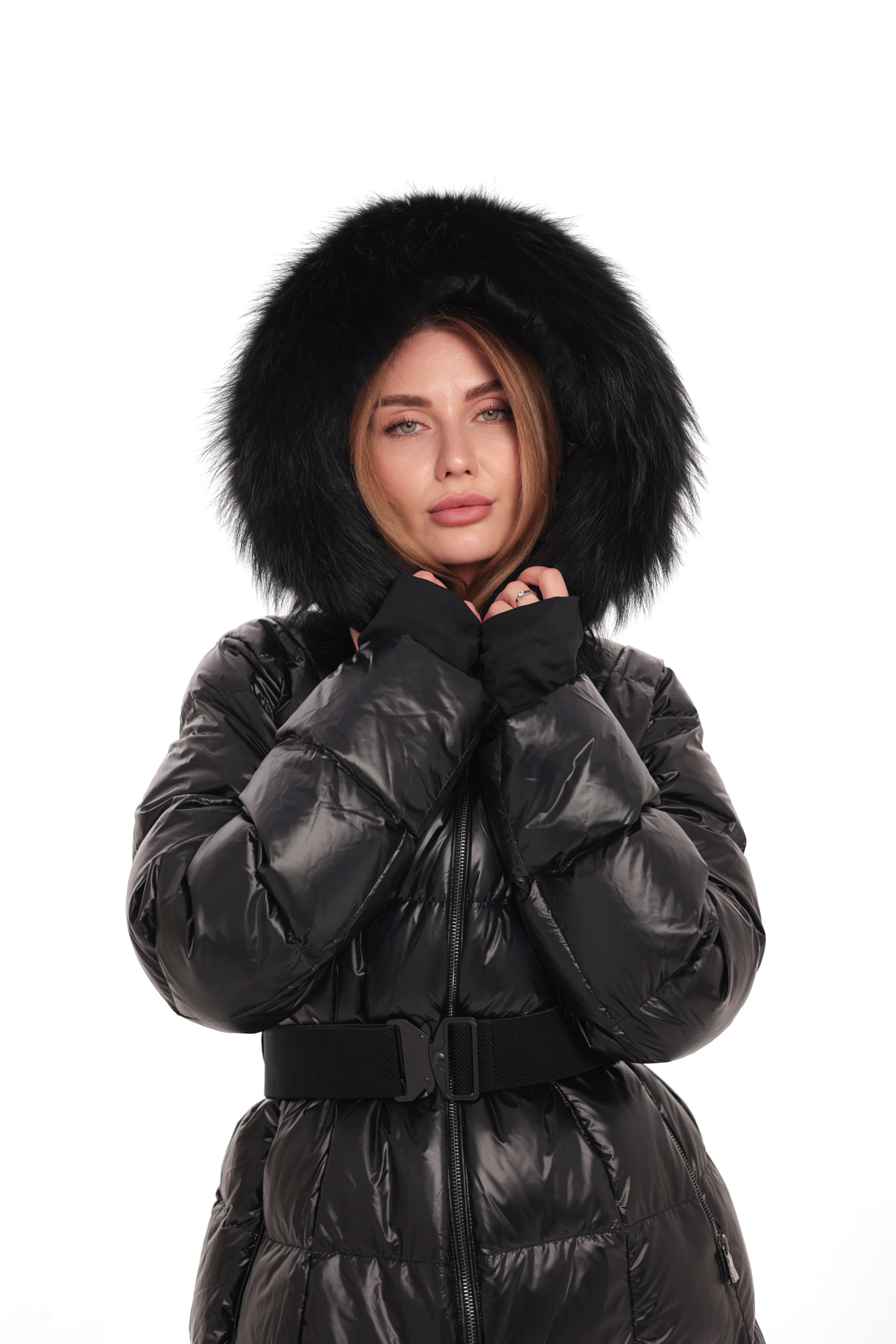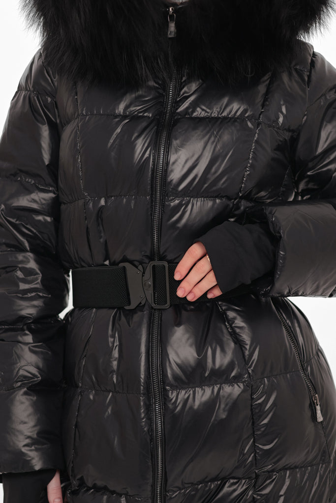 Pre-Order. Ships November 5. Astrid Genuine Fur Trim Down Fill Coat in Black