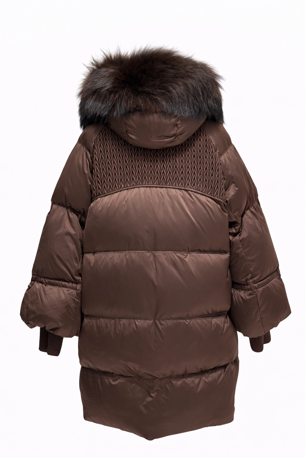 Celeste Genuine Fur Trim Down Fill Coat in Chocolate