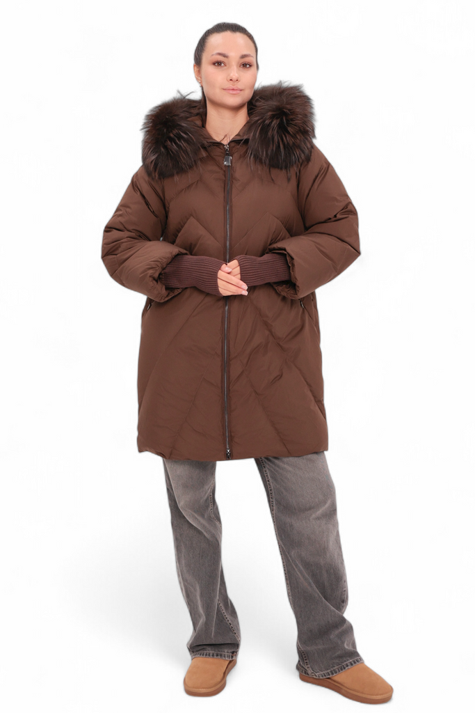 Genuine Fur Trim Down Fill Coat - XS / Chocolate is backordered and will ship as soon as it is back in stock.