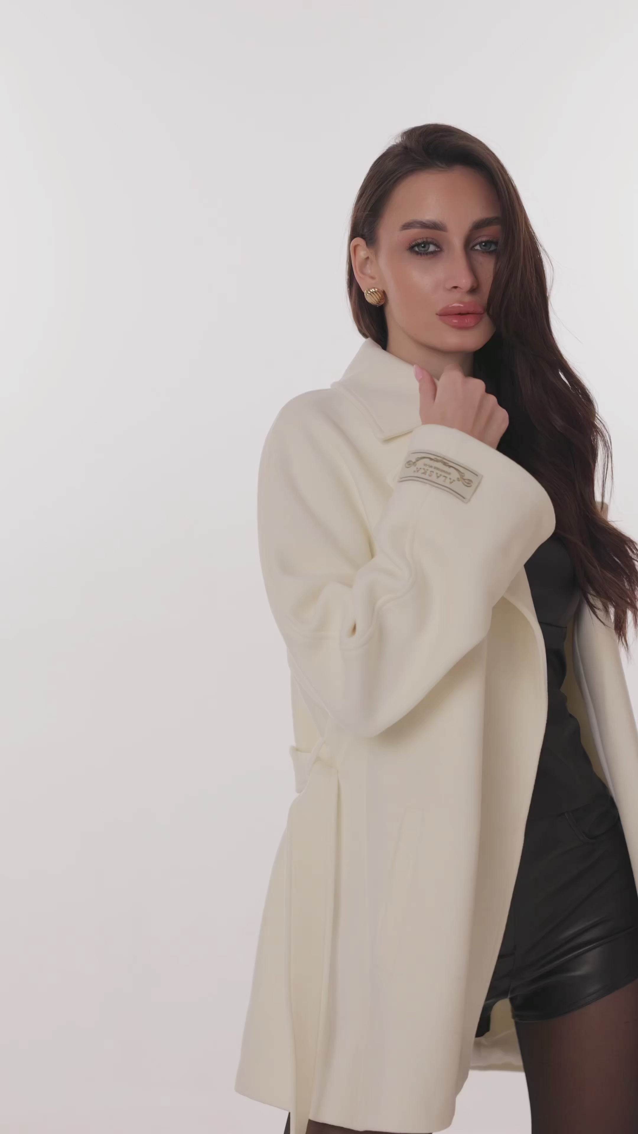 Astoria Midi Cashmere Wool Blend Coat in Ivory