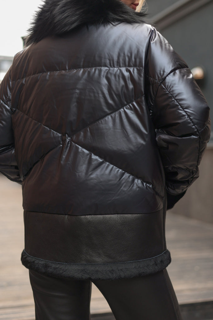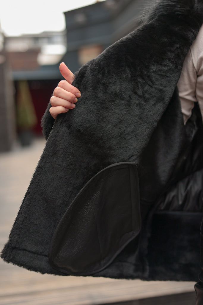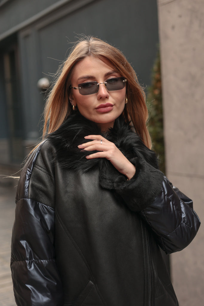 Genuine Lamb Leather Fox Fur Coat