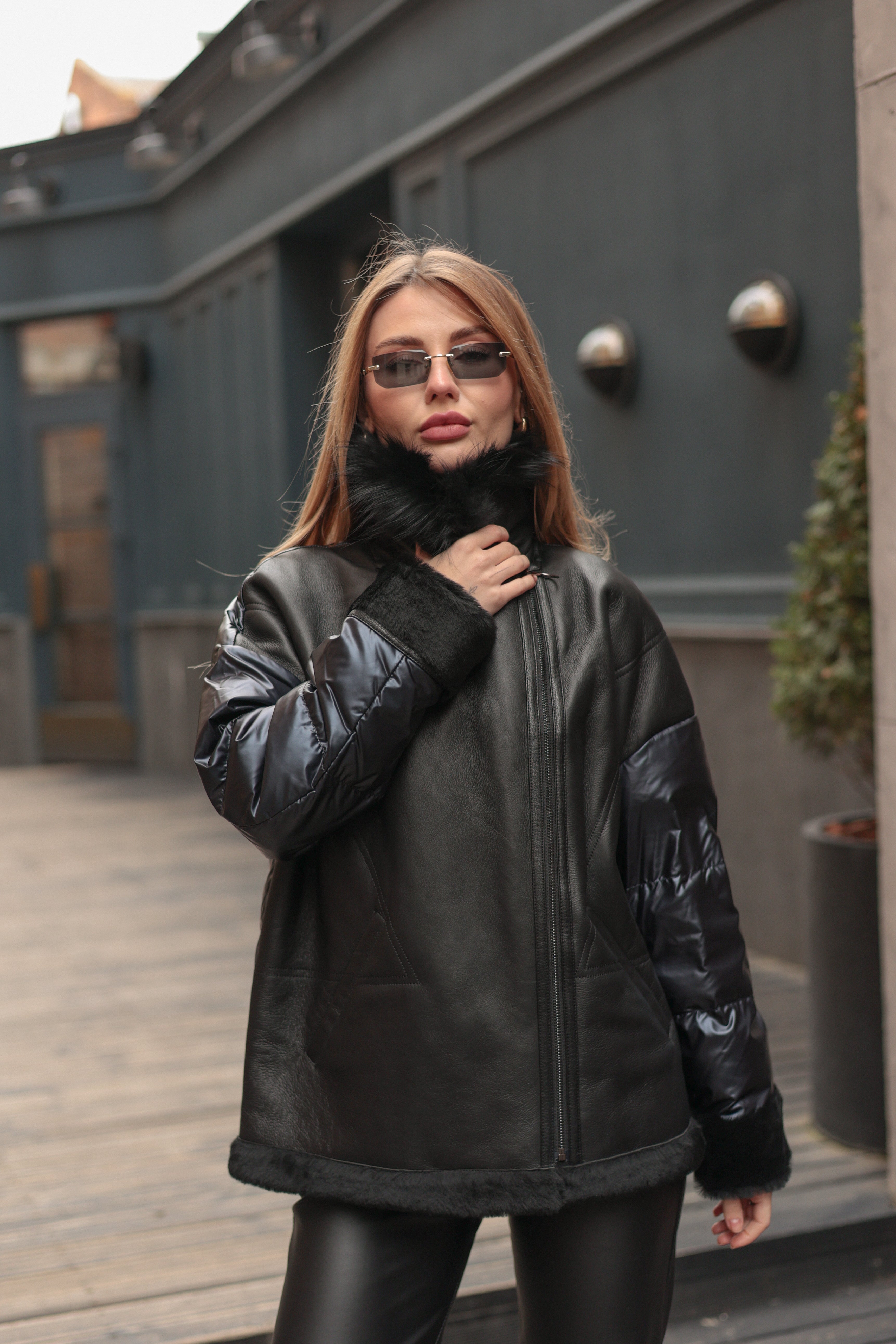 • Genuine shearling lamb leather