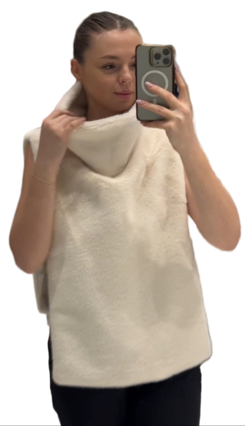 Faux Fur Dickie Vest in Beige